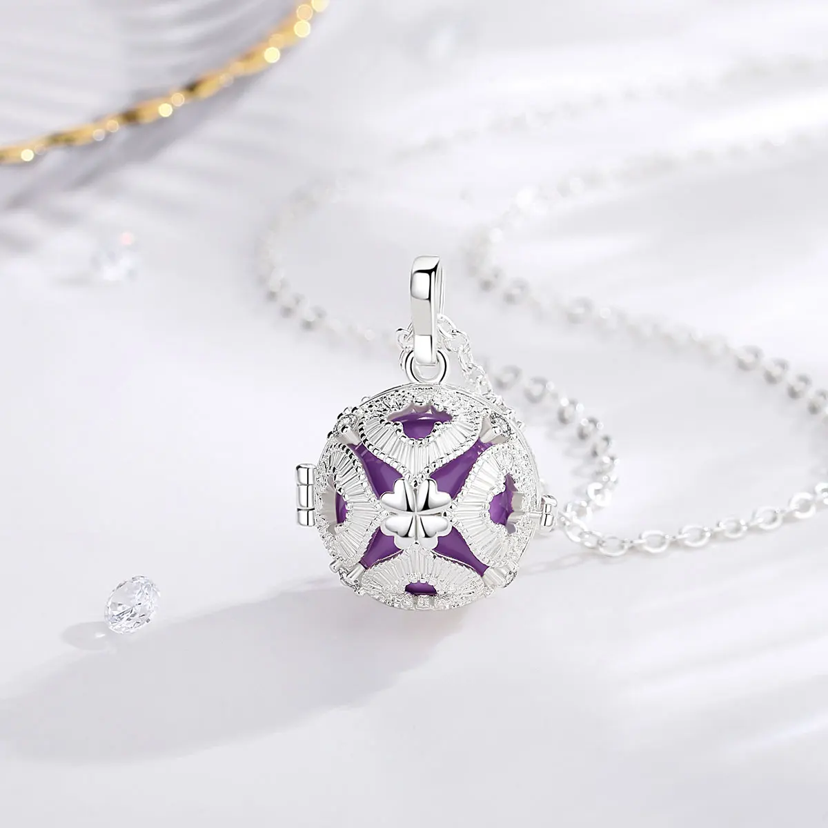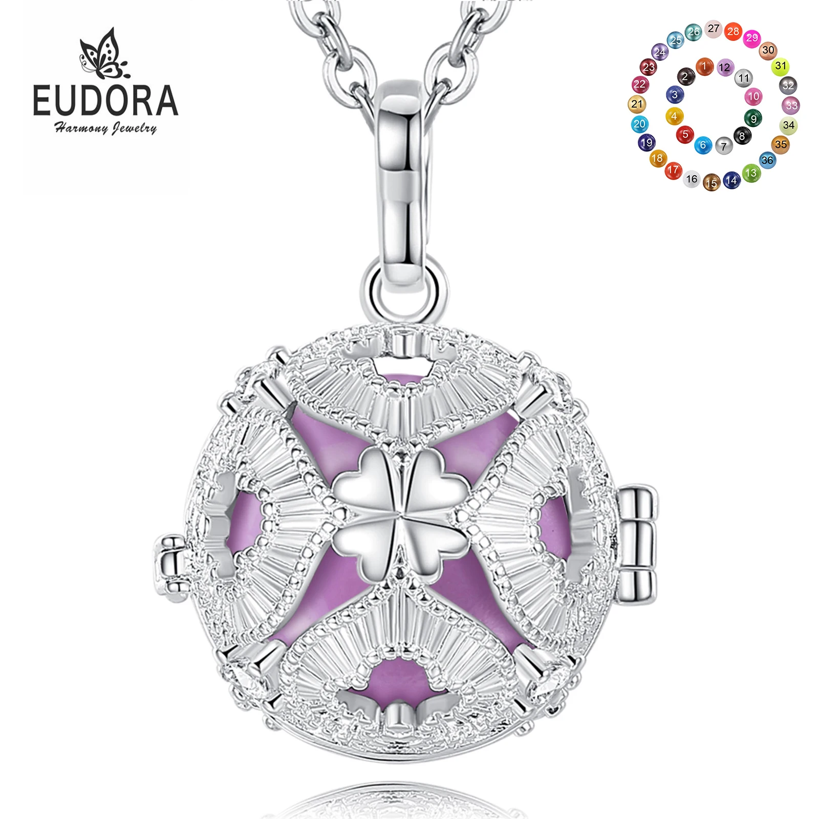Эвдора 18 мм Мода четырехлистный клевер клетка гармония мяч колокольчик кулон Ангел звонящий бола Ожерелье для ребенка беременность ювелирные изделия
