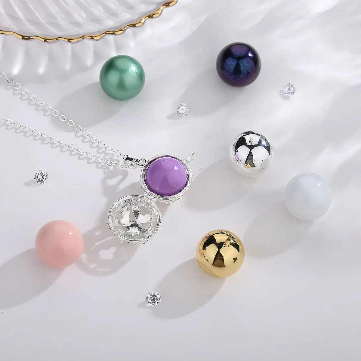 1 шт внутренний шар (или без шара) + 1 шт медальон клетка + 1 шт цепь + 1 * коробка
