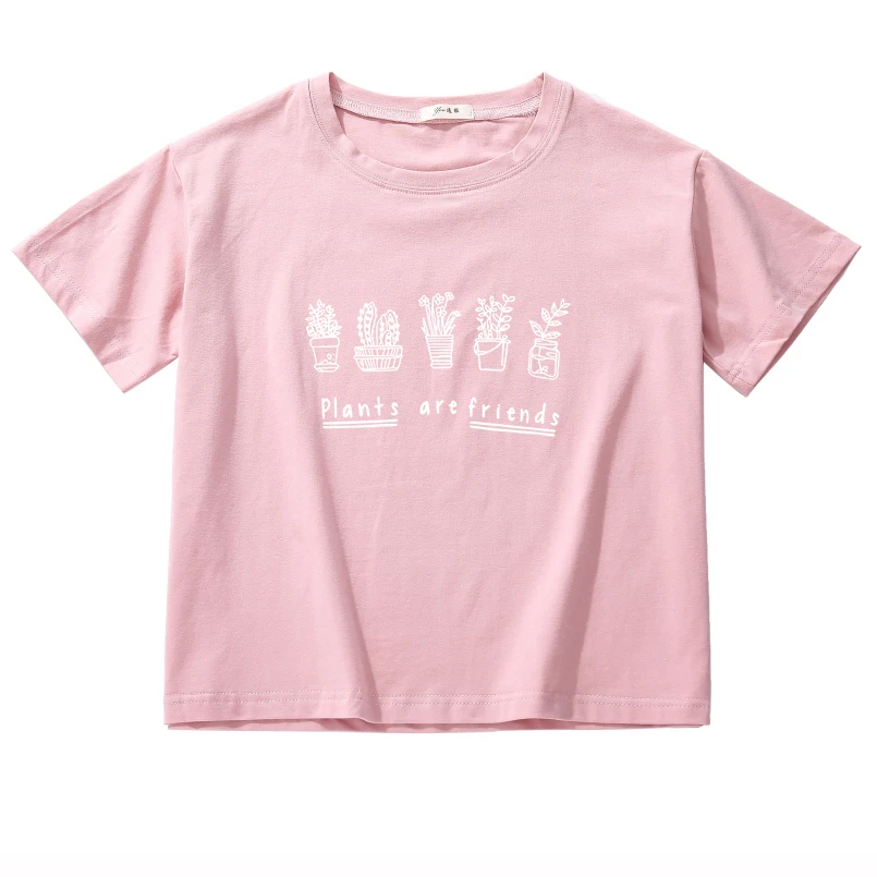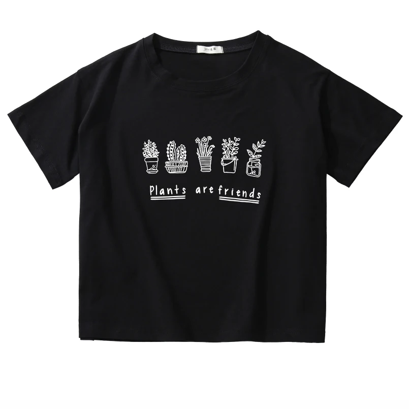 Женские футболки с графическим принтом растений и друзей, летний укороченный топ в стиле Харадзюку, простая модная футболка, Женская винтажная одежда, 2021