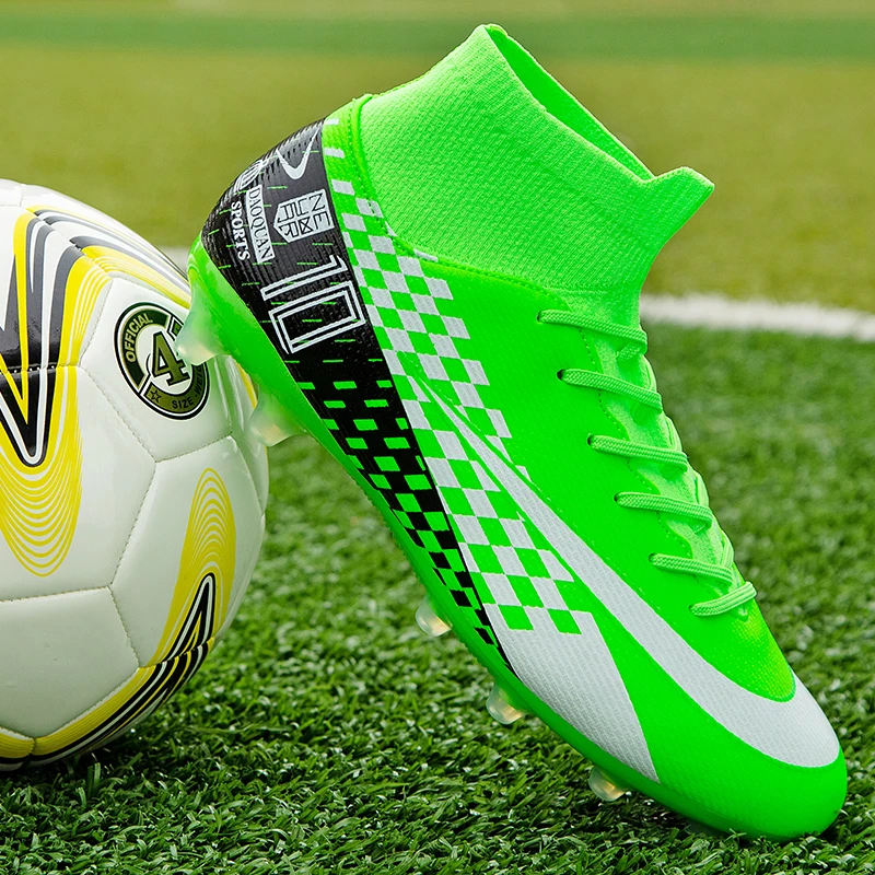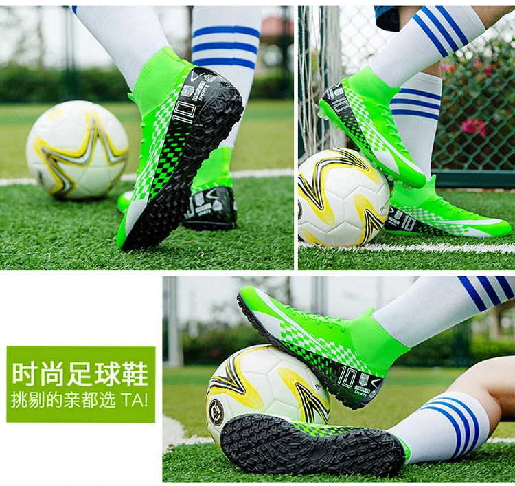 Мужские футбольные туфли, высокие дышащие кроссовки с шипами для подростков, размер 35-45, детские Нескользящие футбольные ботинки для тренировок по траве, FG TF