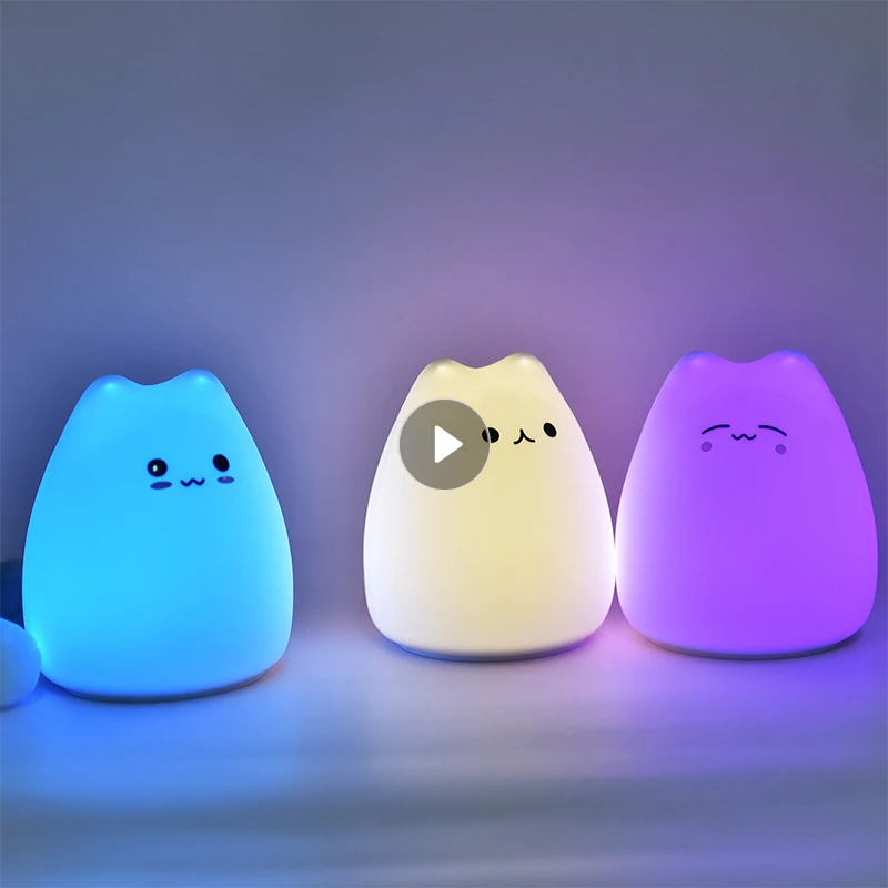 Мультяшные ночные светильники в 3 стилях, цветные, меняющие цвет, для детской спальни, ночное освещение, силиконовая лампа в виде маленькой кошки