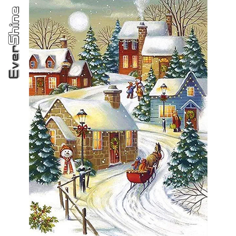 Evershine 5D DIY Бриллиантовая живопись, пейзаж, полноразмерная Круглая Мозаика стразы, зимний домашний декор