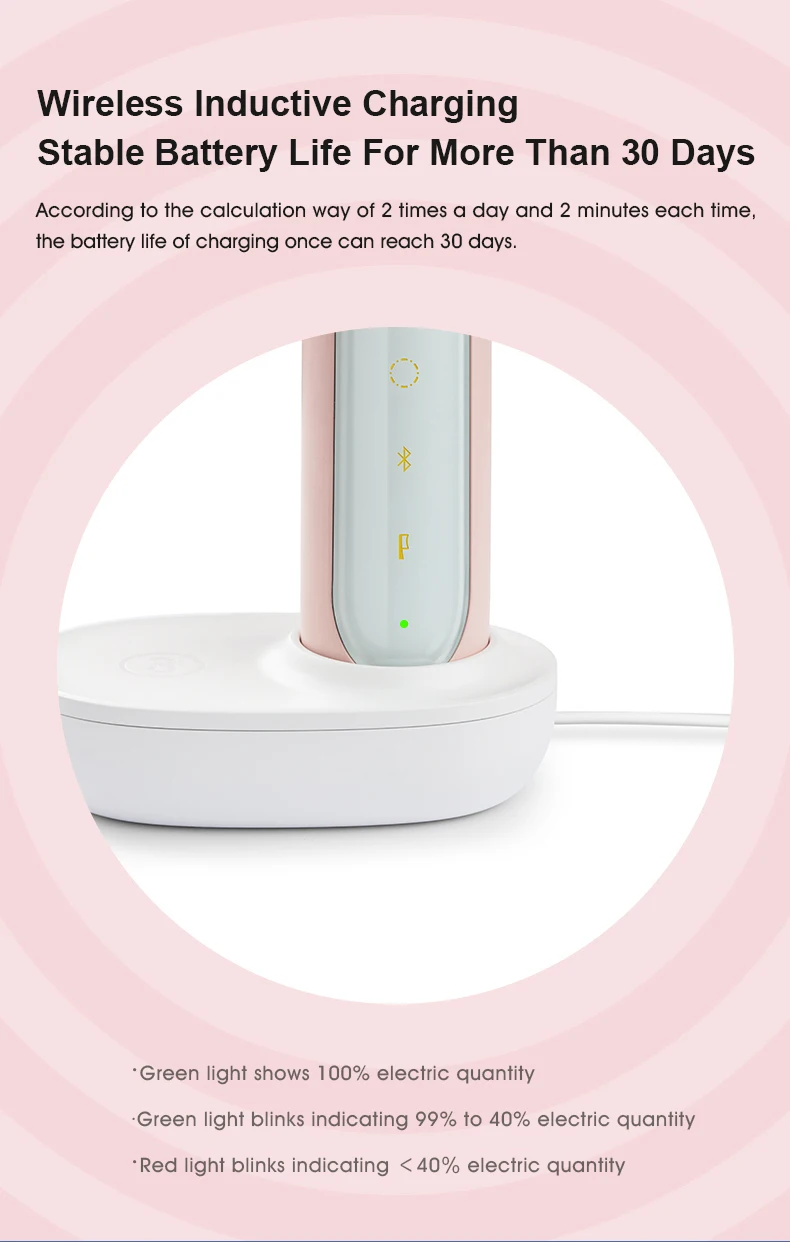 ● Звуковая зубная щетка качели на 18,5 градусов, что обеспечивает глубокое очищение кожи мертвых углов.