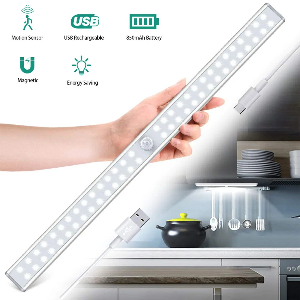 Светильник ночник с датчиком движения, беспроводной ночник с зарядкой через USB для шкафа, кухни, кабинета, гардероба, светильник стницы