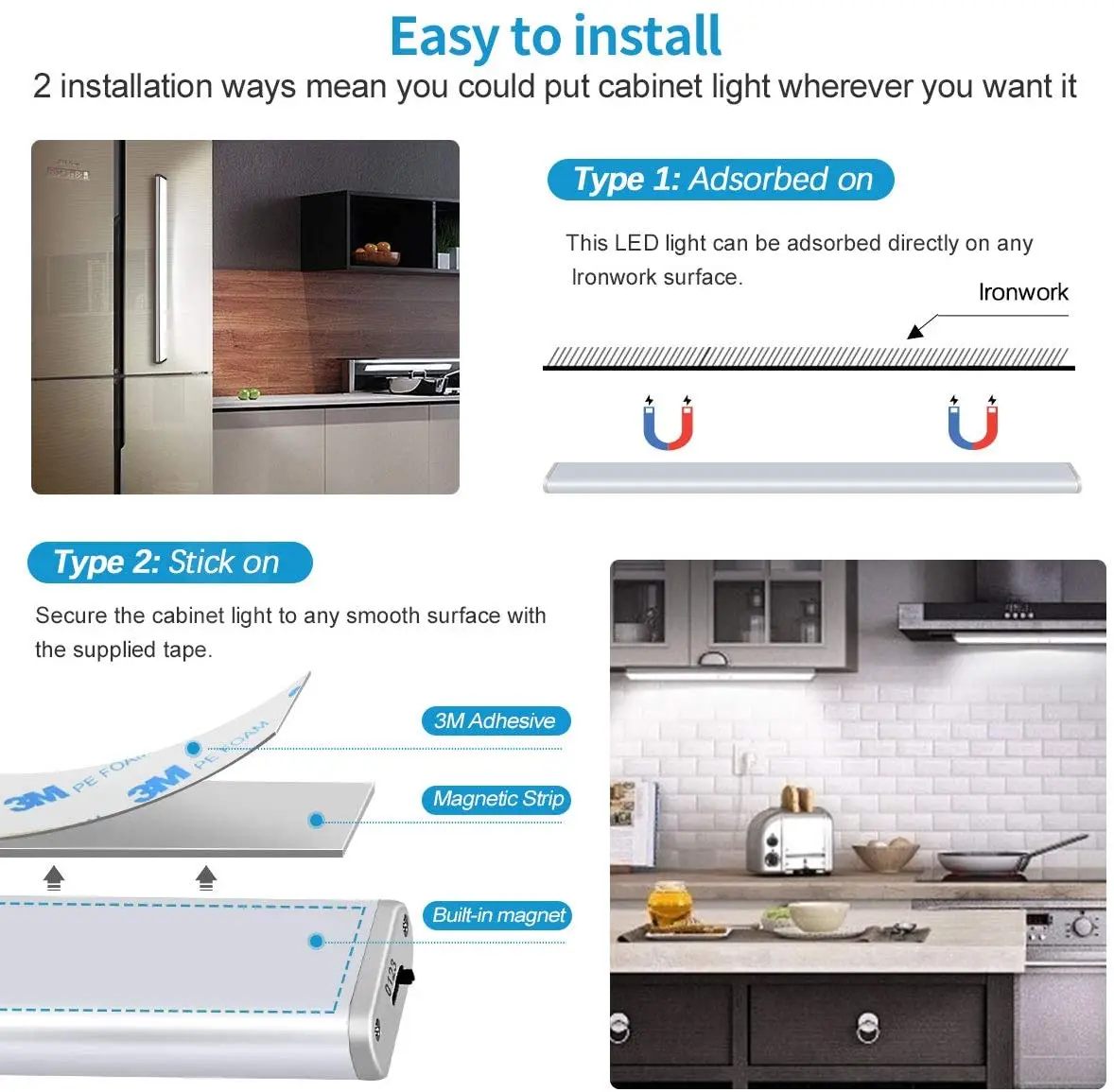 [Супер яркий плавный затемнения]Он содержит 60 белых бусин-светильник и Энергосберегающие светодиоды, яркие и удобные, освещающие темную комнату. После обнаружения движения человека светильник автоматически включится, не ища светильник в темноте.[Распознавание тела и светильник]Светодиодный светильник шкафа имеет 2 режима датчика, который может обнаруживать движения человека в темноте или в течение дня. Используя пассивную инфракрасную технологию, она может обнаруживать движения людей в темноте и автоматически включаться в пределах 3 м/120 °. Освещение шкафа автоматически отключается через 15-18 секунд после того, как не обнаружено движение, чтобы сэкономить энергию.[Легко разбирать и собирать]Лампа шкафа имеет сильное магнитное поле на обоих концах и оснащена магнитной задней пластиной. В лампе имеется прочная * литиевая батарея. Он не требует каких-либо инструментов, болтов или гаек и может быть подключен к любому Железному изделию. Вы можете вставить Магнитный железный лист в любом месте, или вы можете удалить его и подключить светильник шкафа к любому Железному изделию.[Без бликов в темноте]С помощью антибликового диффузора, этот светильник шкафа не только автоматически обеспечивает естественный и яркий светильник в области, но и защищает ваши глаза от ослепления в ночное время.[4 вида режимов цикла]Режим 1: ночной режим (зеленый контрольный светильник мигает в течение 3 секунд). Режим 2: дневной режим (зеленый световой светильник мигает 6 раз). Режим 3: Режим постоянного светильник (без дисплея). Режим 4: закрытый. Вы можете установить режим дня или ночи в соответствии с вашими потребностями, что экономит энергию и более удобно.[Широкий спектр применения]Нижняя кухонная лампа имеет высококачественный корпус из алюминиевого сплава, что обеспечивает лучшую теплоотдачу. Очень подходит для спален, шкафов, шкафов, мастерских, гаражей, лестниц, коридоров, складских помещений и т. д. Если у вас есть какие-либо вопросы, пожалуйста, свяжитесь с нами, мы дадим вам удовлетворительный ответ в течение 24 часов.