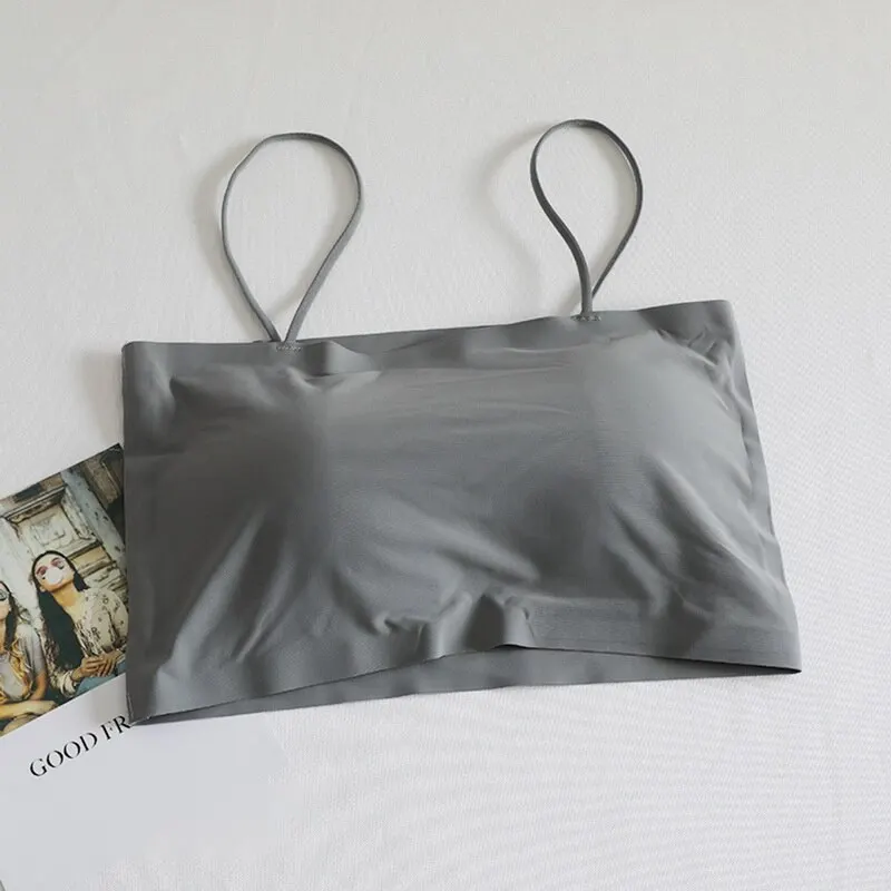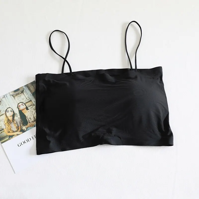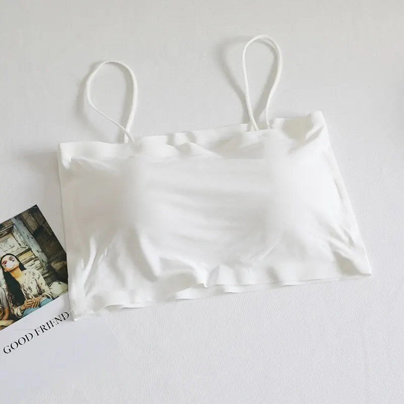 Женский бесшовный бюстгальтер, Шелковый однотонный топ со съемными ...