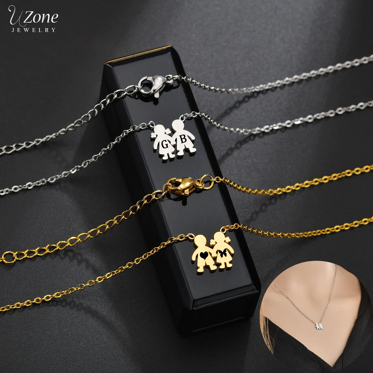 Ожерелье UZone с именем на заказ, ювелирное изделие из нержавеющей стали с гравировкой на день рождения для мальчиков и девочек, Подарочная Бижутерия для детей