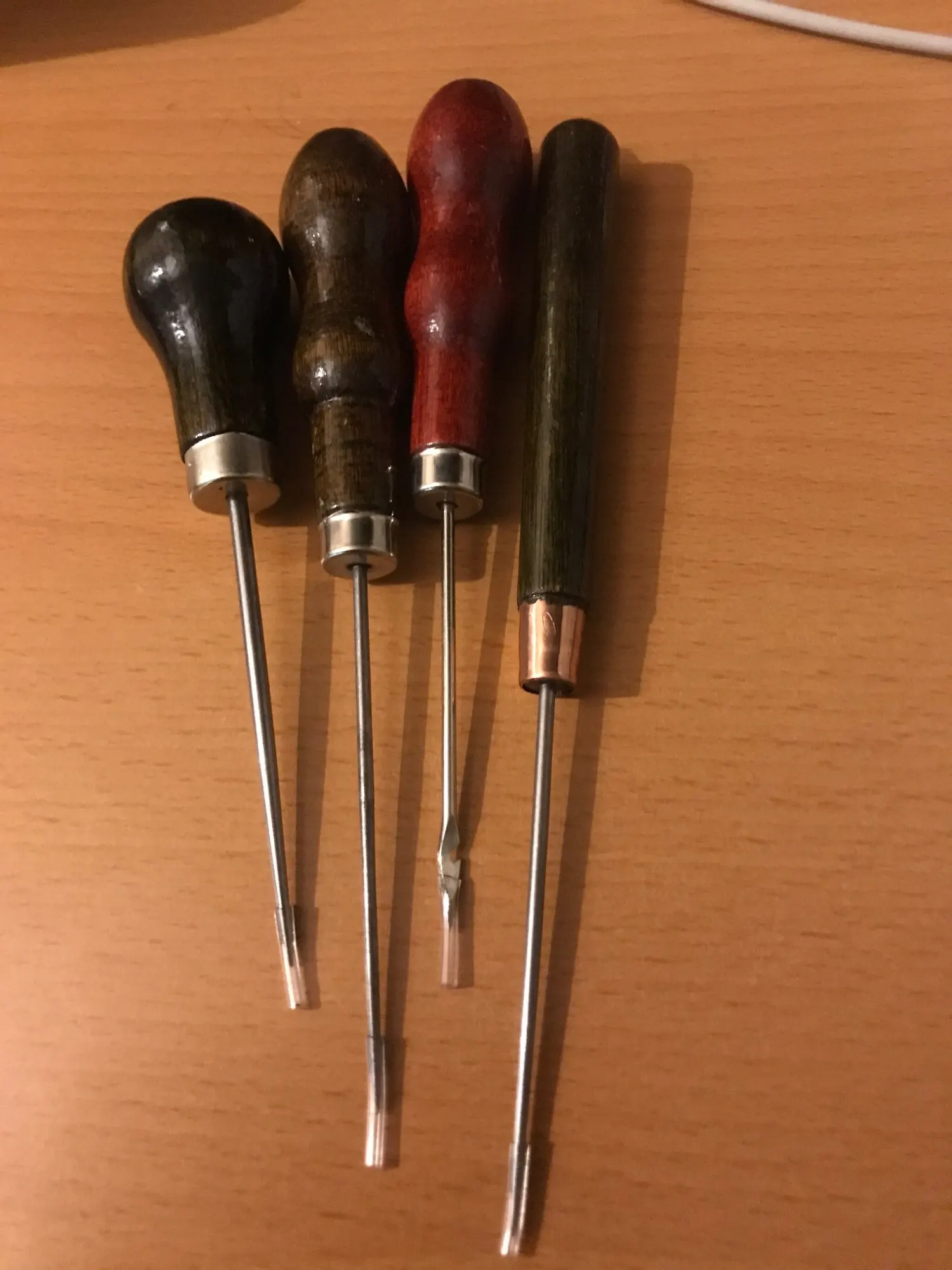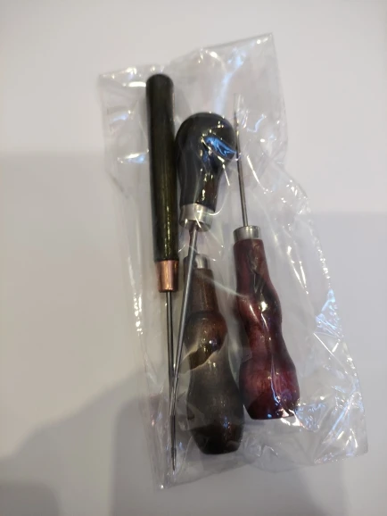 Хорошие awls. Достаточно острый, чтобы проколоть мягкую кожу и легко проскользнуть через Прокол на толстой телячьей палочке