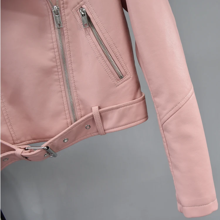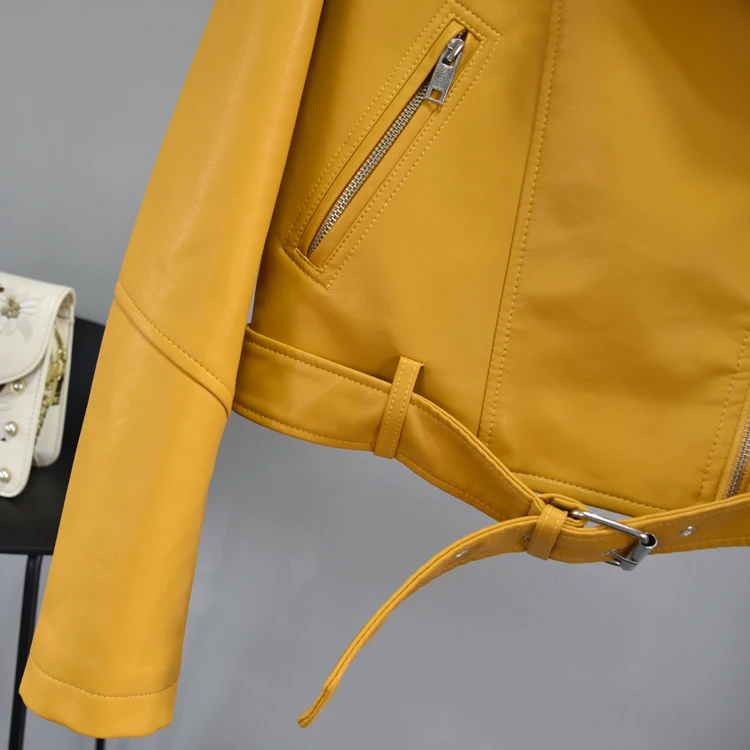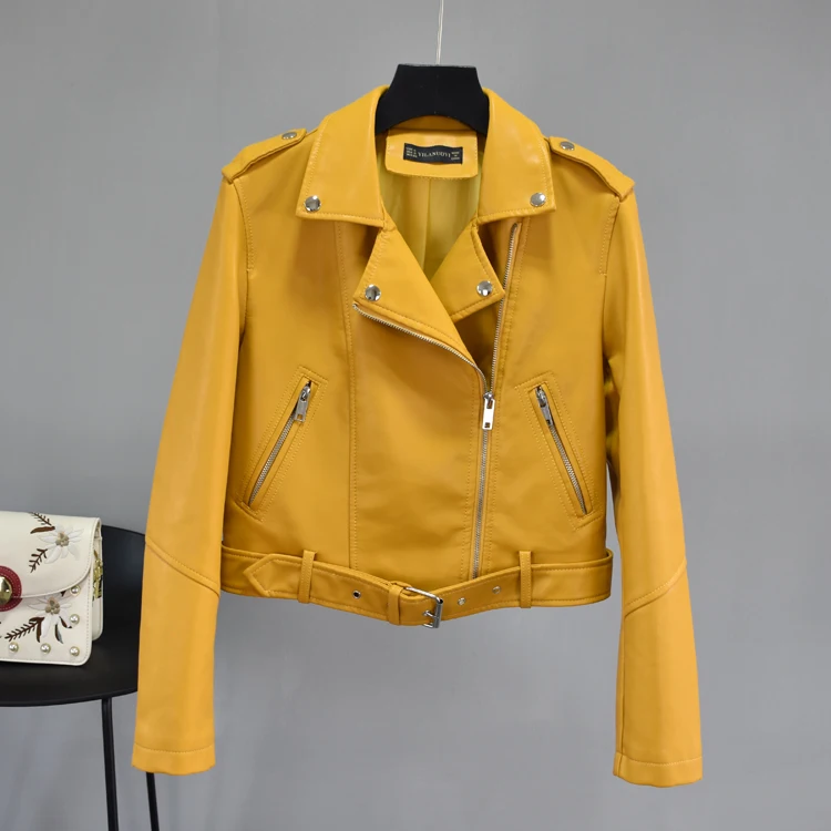 Женская куртка-бомбер из искусственной кожи, байкерская куртка розового, желтого и черного цветов с ремнем, верхняя одежда, 2021