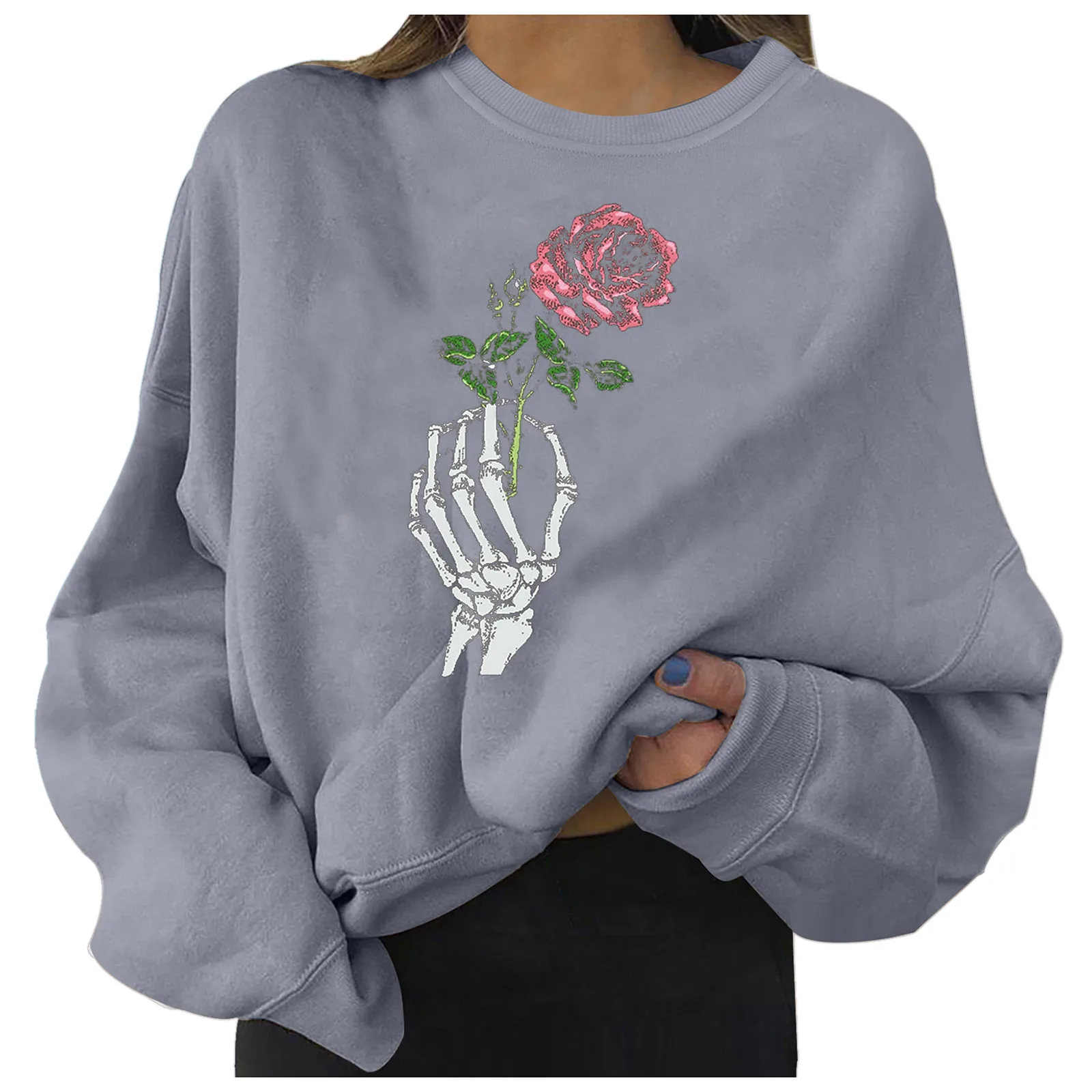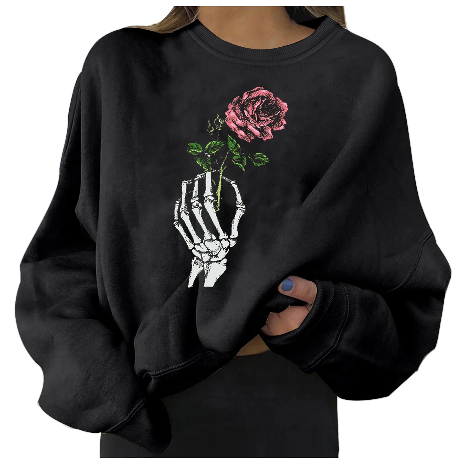 Женская толстовка с длинным рукавом и круглым вырезом, с принтом