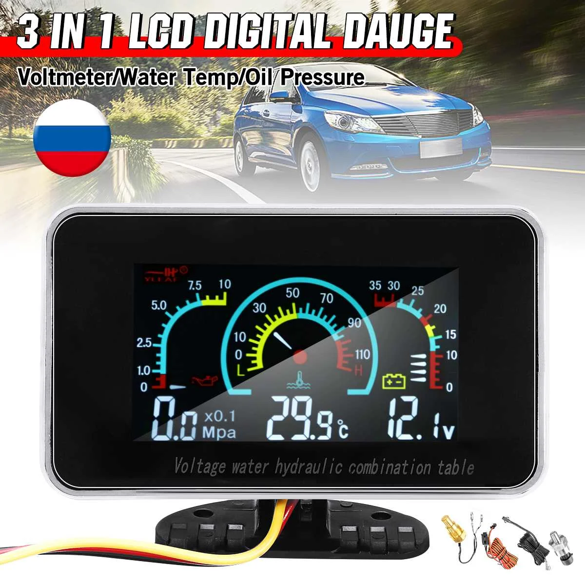 Автомобильный цифровой вольтметр 12-24 в 3 в 1 с ЖК-дисплеем, измеритель давления масла и воды, датчик давления масла 18 NPT M10