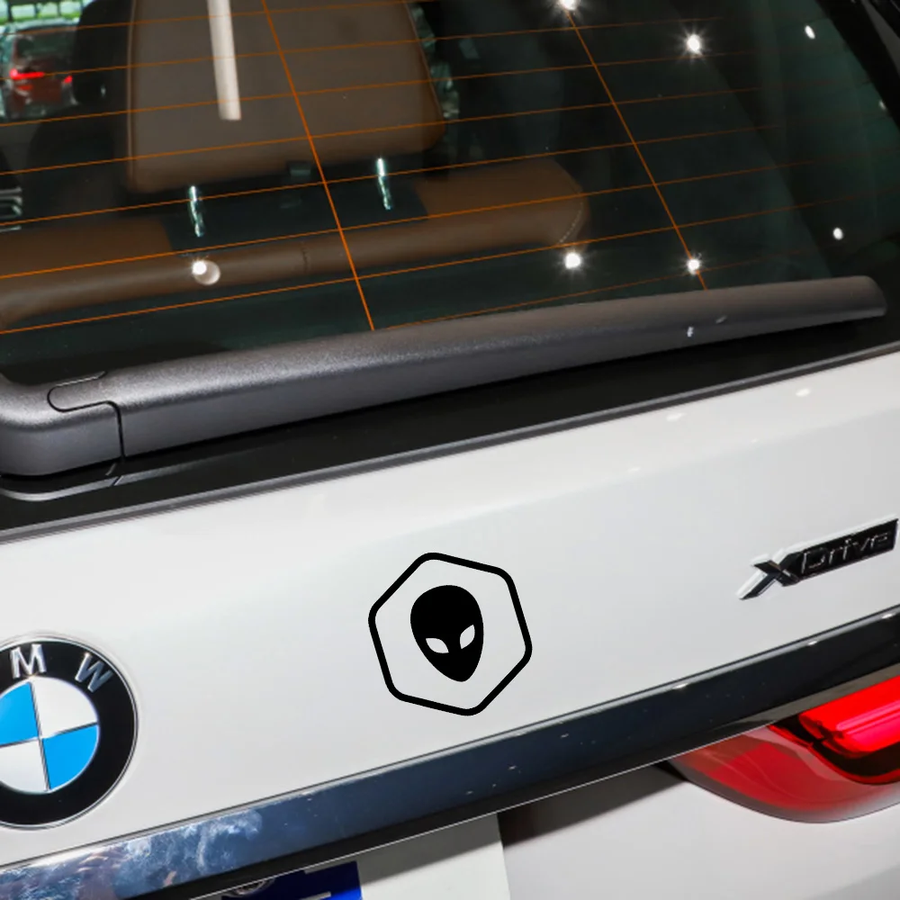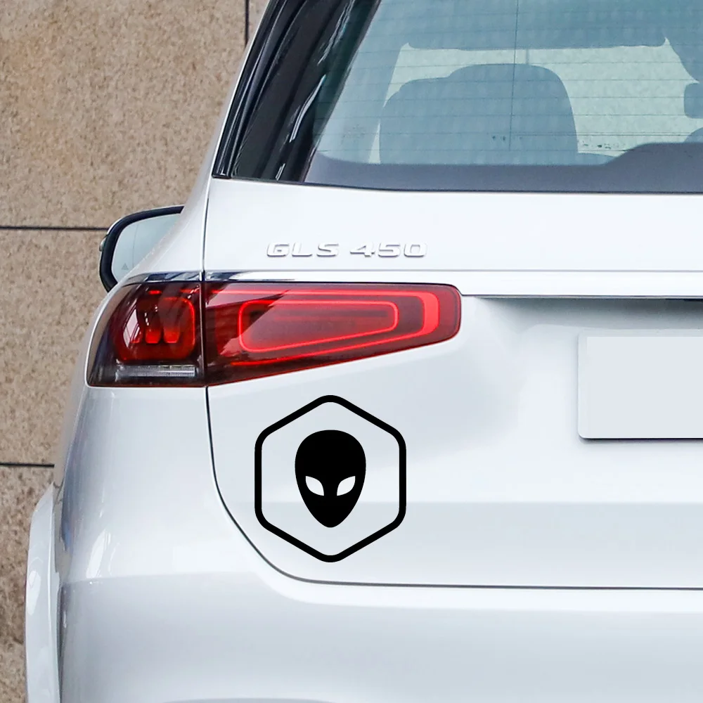 Мультяшный контур инопланетянина Шестигранная виниловая наклейка автомобильная оконная Наклейка Чернаясеребряная 11,8*12,9 см S-00329