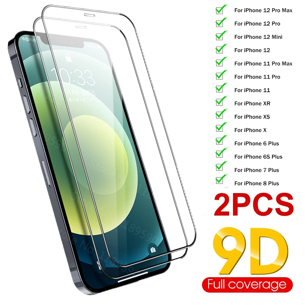 2 шт. Защитное стекло для экрана для iPhone 12 11 13 Pro Max 12 Mini XS X 7 8 6 s Plus XR закаленное стекло Verre trempé Protecteur d'écran