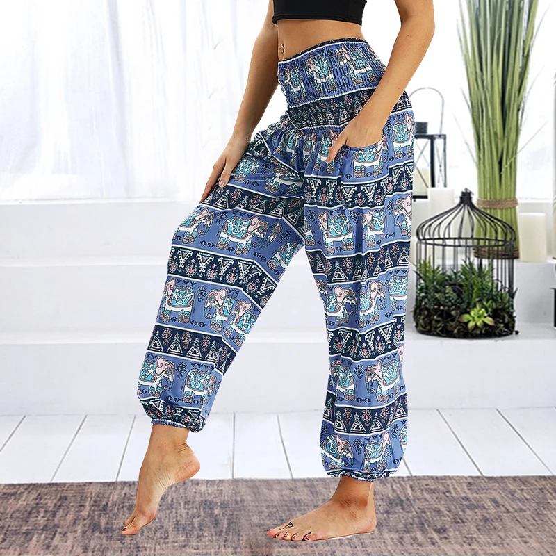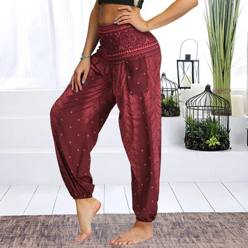 Женские брюки для йоги, свободные, с цветочным принтом, широкие, эластичные