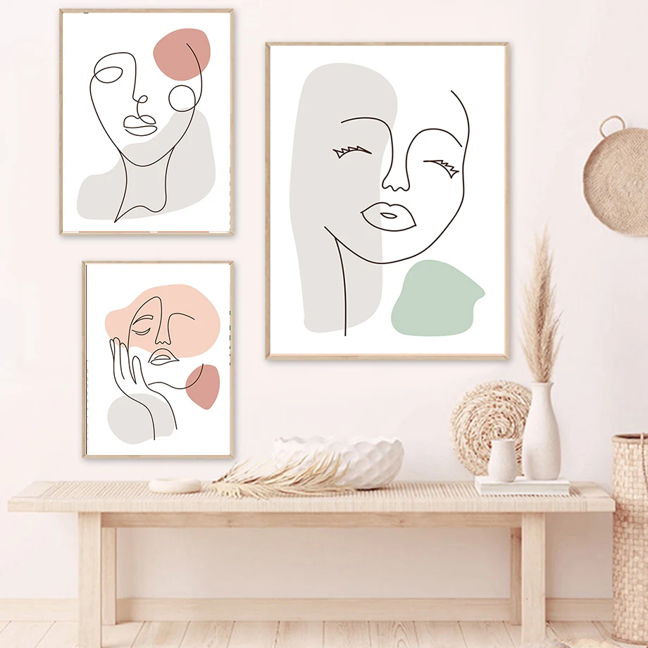 Абстрактная женщина, лицо, художественные рисунки, фотография, рисунок с линией, настенные постеры, гостиная, домашний декор