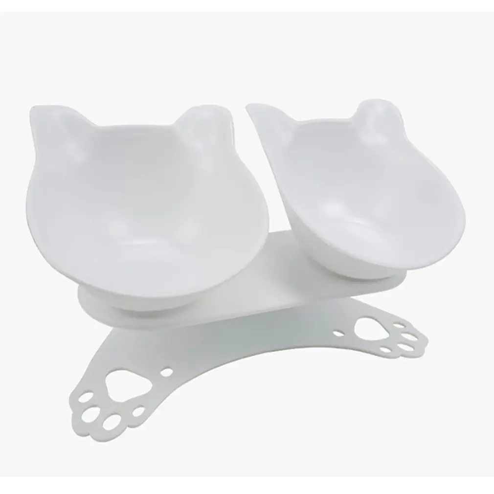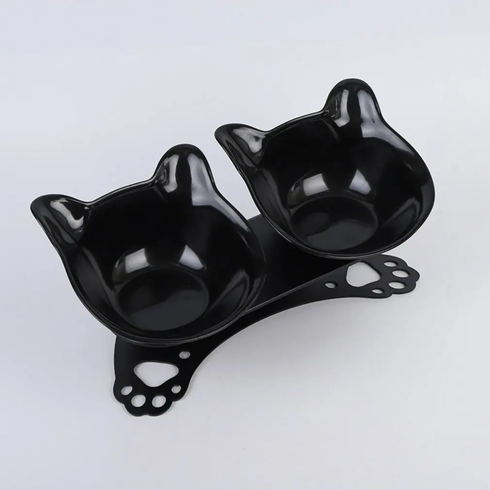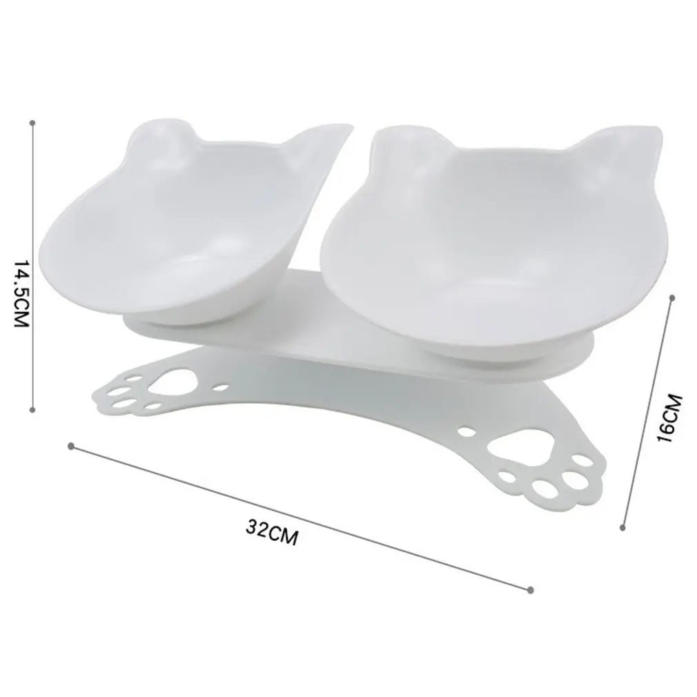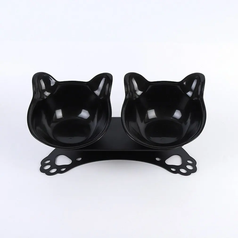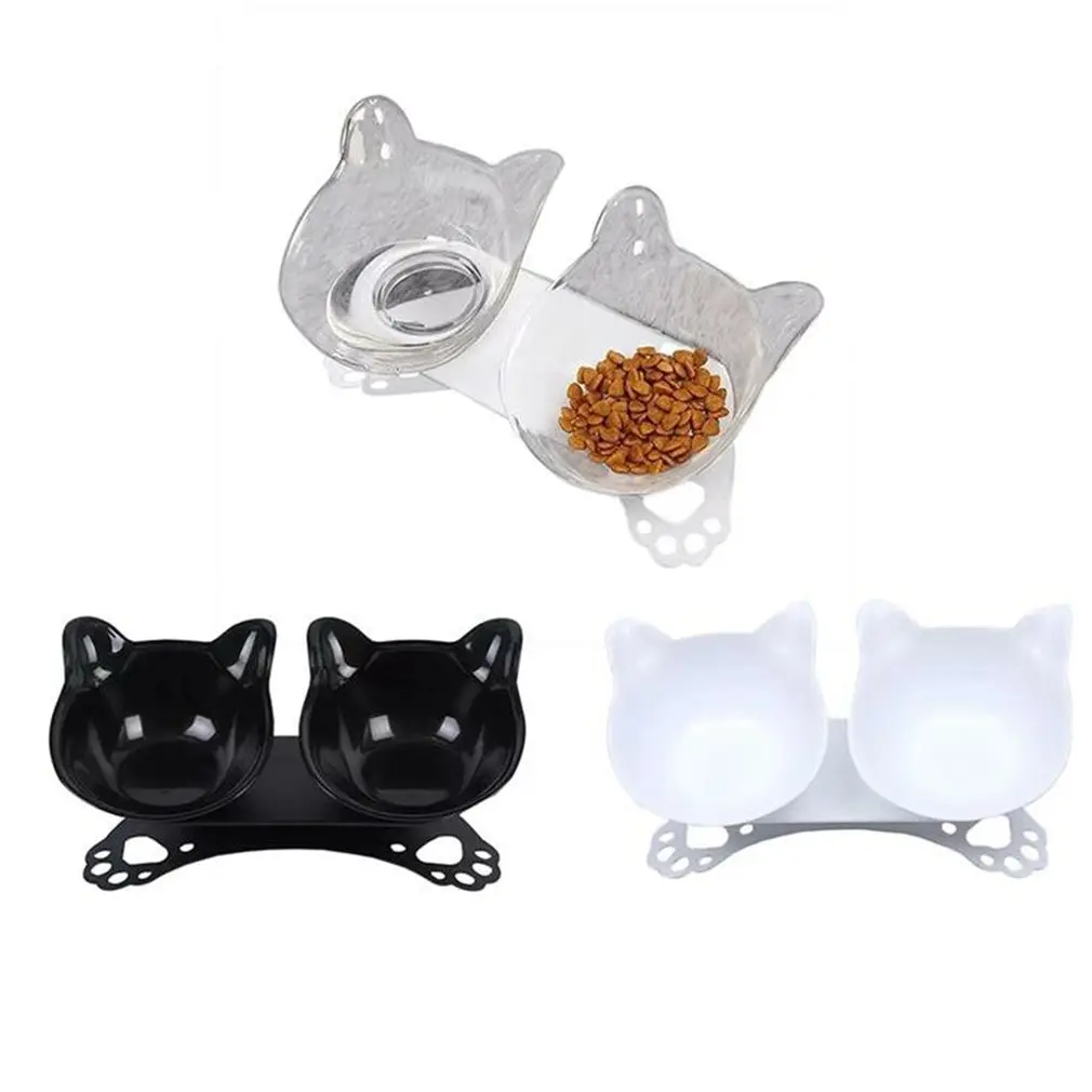 Двойная миска для кошек и собак, двойные пластиковые миски с нескользящей резиновой основой и наклоном на 15 для защиты шейного отдела позвоночника