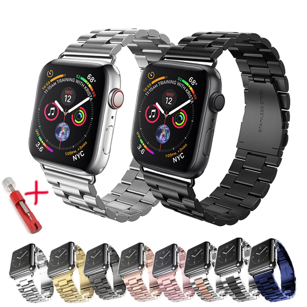 Ремешок для Apple Watch Band 44 мм 38 мм 40 мм 42 мм, металлический браслет из нержавеющей стали для iWatch 7 6 5 4 3 SE, аксессуары 45 мм
