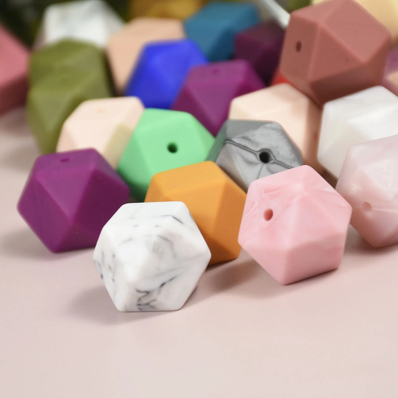 500 шт 17 мм силиконовые бусины для прорезывания зубов шестиугольник для кормления жевательное ожерелье Diy ювелирные изделия прорезыватель без Bpa бусины для ребенка