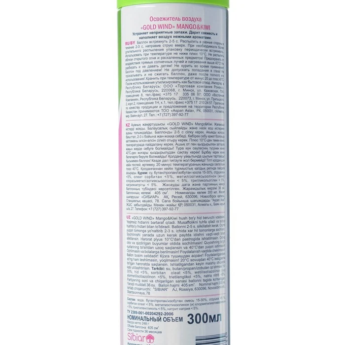 Освежитель воздуха Gold wind 2 в 1 манго и киви, 300 мл