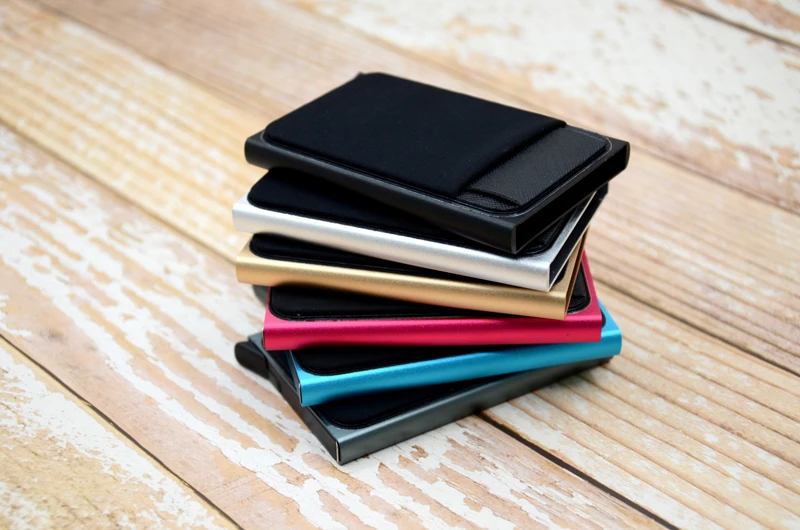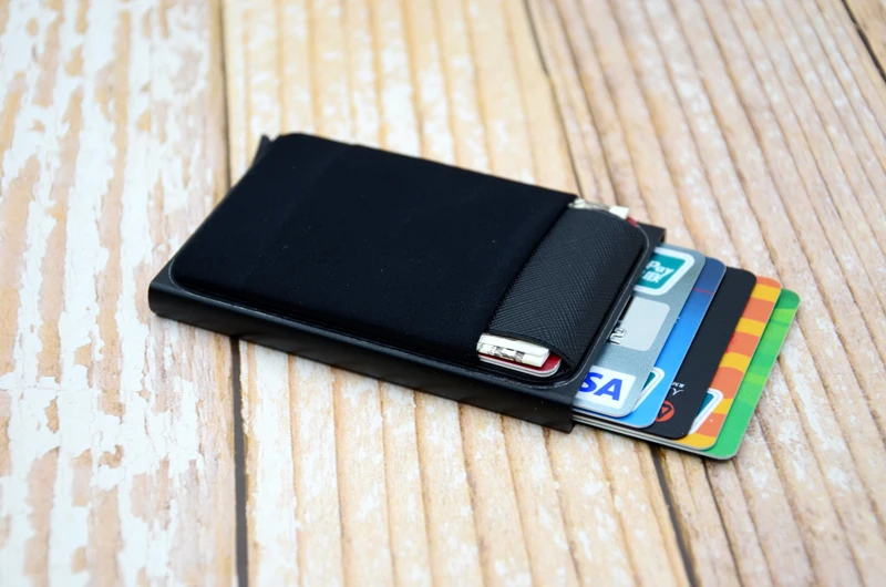 YUECIMIE тонкий алюминиевый кошелек с эластичной задней крышкой держатель для ID кредитных карт мини RFID кошелек автоматический выдвижной чехол для банковских карт