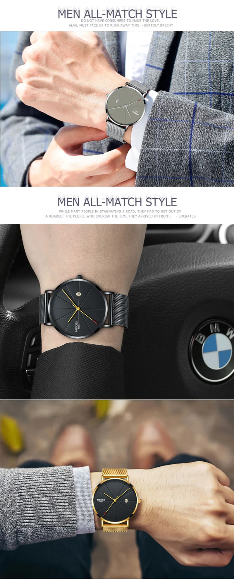 Часы наручные NIBOSI мужские ультратонкие, брендовые Роскошные водо...