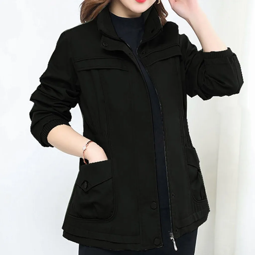 2019 модная армейская зеленая Женская куртка с длинным рукавом, ветровка, парка, кардиган с карманами, пальто, осенняя верхняя одежда, женская одежда #35