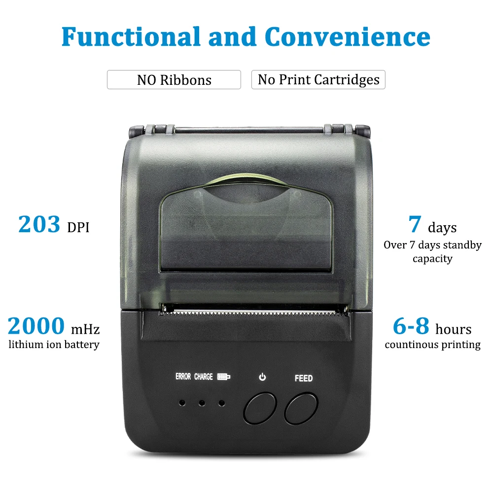 Диаметром 58 мм, Bluetooth Термопринтер для чеков для Android, IOS, Windows и 5890T, порт RS232, чековый принтер POS Port able