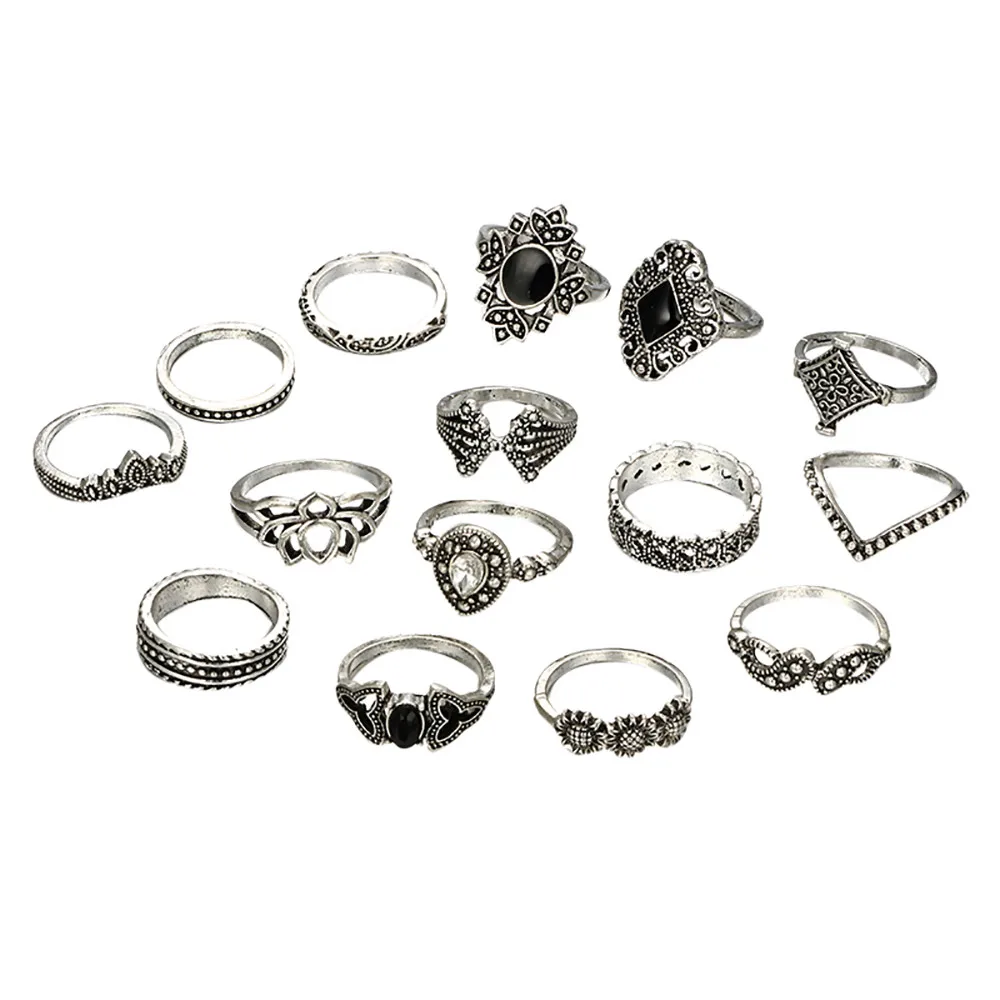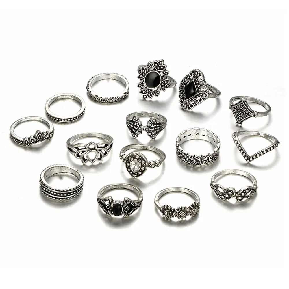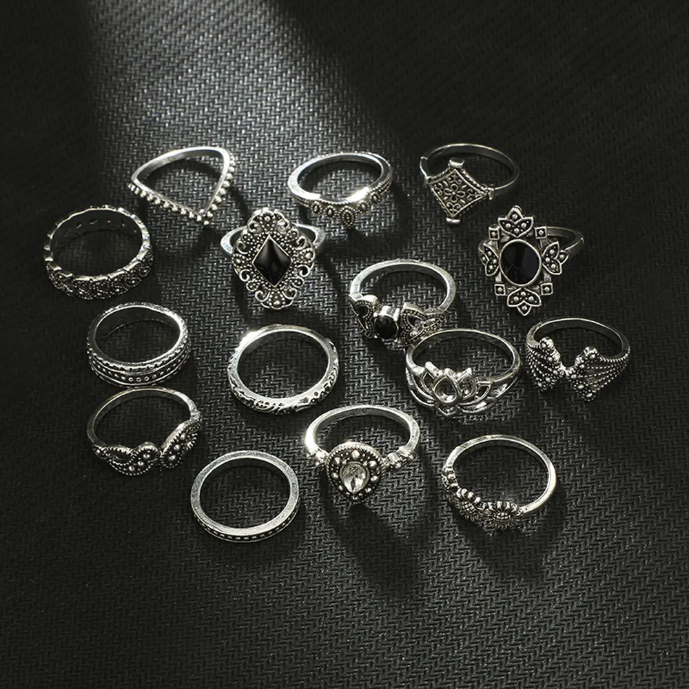 Кольцо женское в стиле панк, 15 шт.компл., в готическом стиле