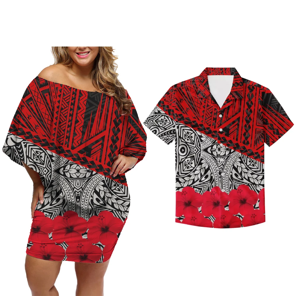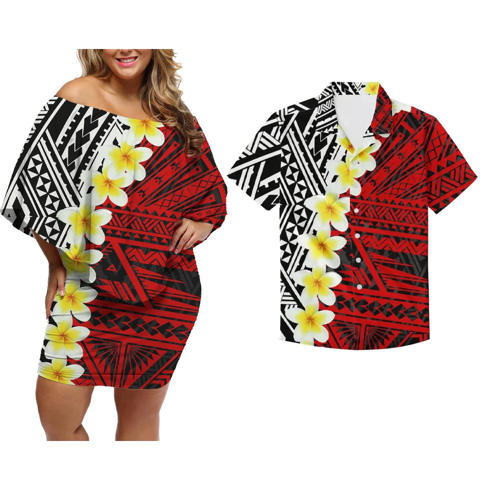 Полинезийские этнические парные костюмы, женское платье с открытыми плечами, подходящая Мужская рубашка для вечерние ринки, свадебная одежда, островная одежда