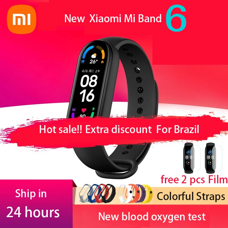 Умный Браслет Xiaomi Mi Band 6, водонепроницаемый фитнес-трекер с измерением пульса и уровня кислорода в крови, 5 АТМ, 5 цветов