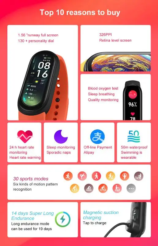 [1,56 ''amoled] 1,56 ''amoled цветной экран, экран 50% больше того, что вы MI Band5 (1,1 '').