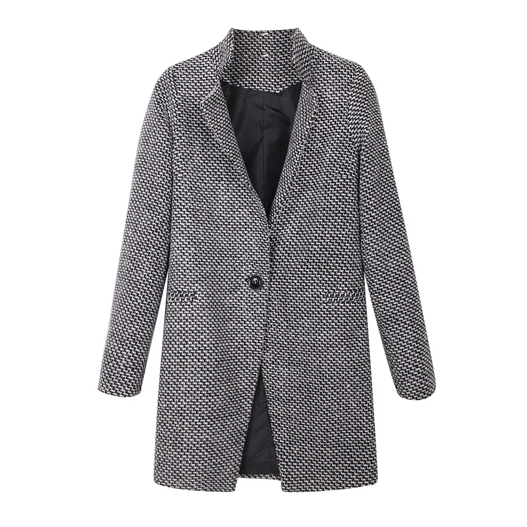 Женский зимний теплый Тренч, длинное пальто, верхняя одежда с отворотом, шерстяная куртка, пальто размера плюс