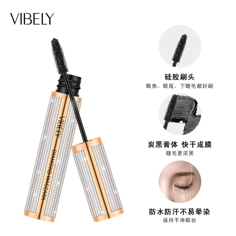 Тушь для ресниц VIBELY, черная, водостойкая, удлиняющая