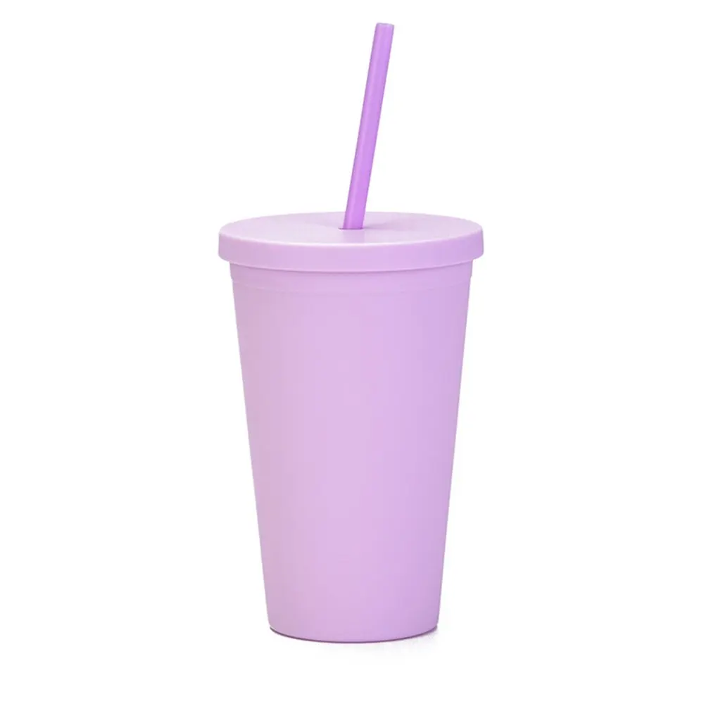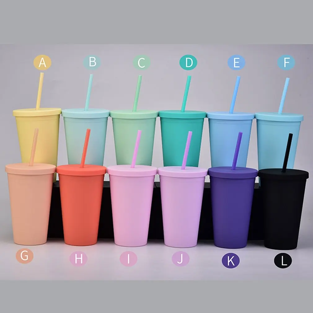 16 унций конфетный цвет антиобрастающая двухслойная пластиковая матовая соломенная Питьевая чашка кофейная чашка пластиковая матовая готовая к использованию чашка для воды