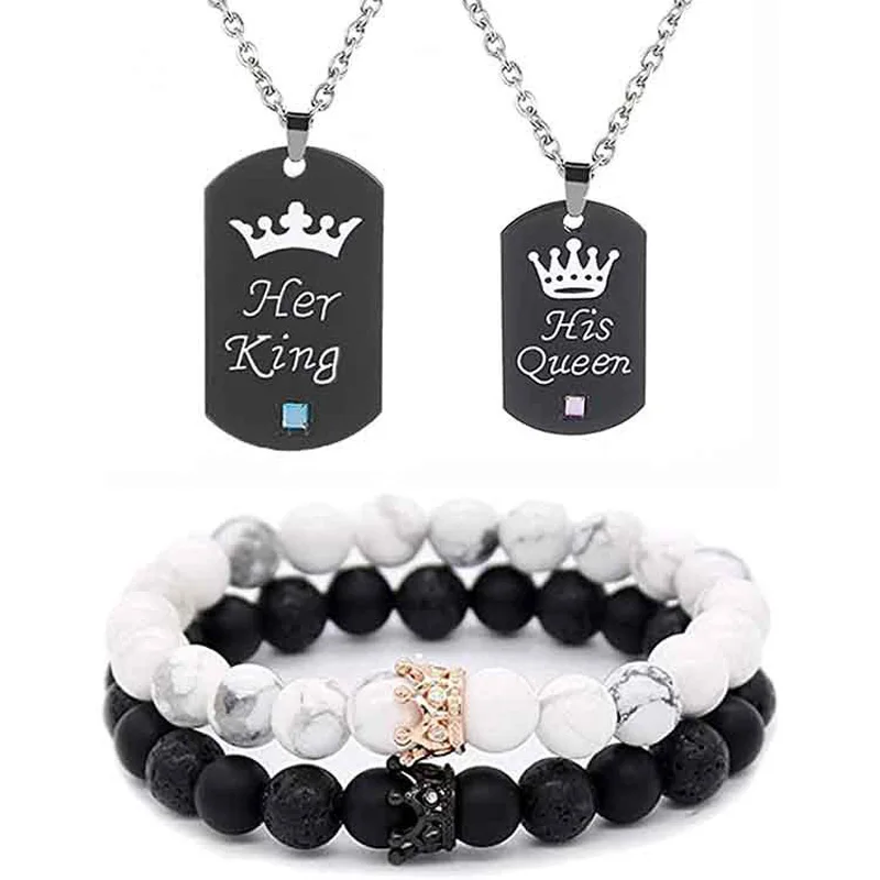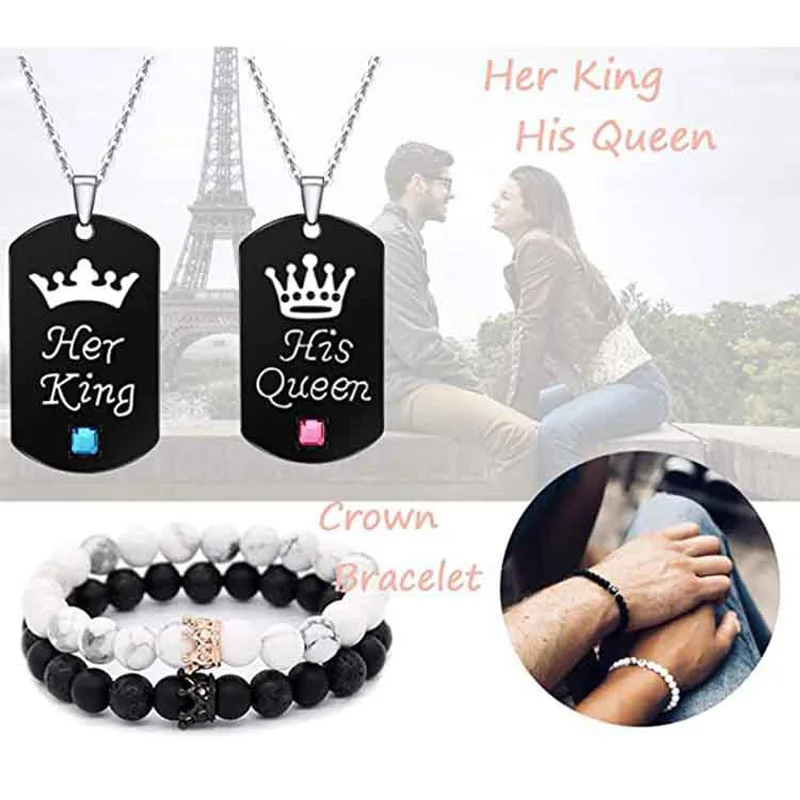 Новый креативный простой модный ожерелье с плетеным браслетом его королевы ее короля пары ювелирных изделий
