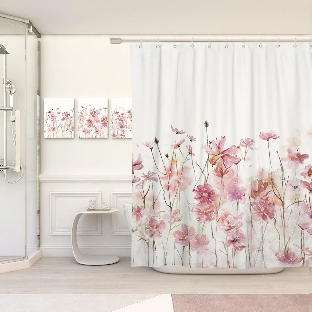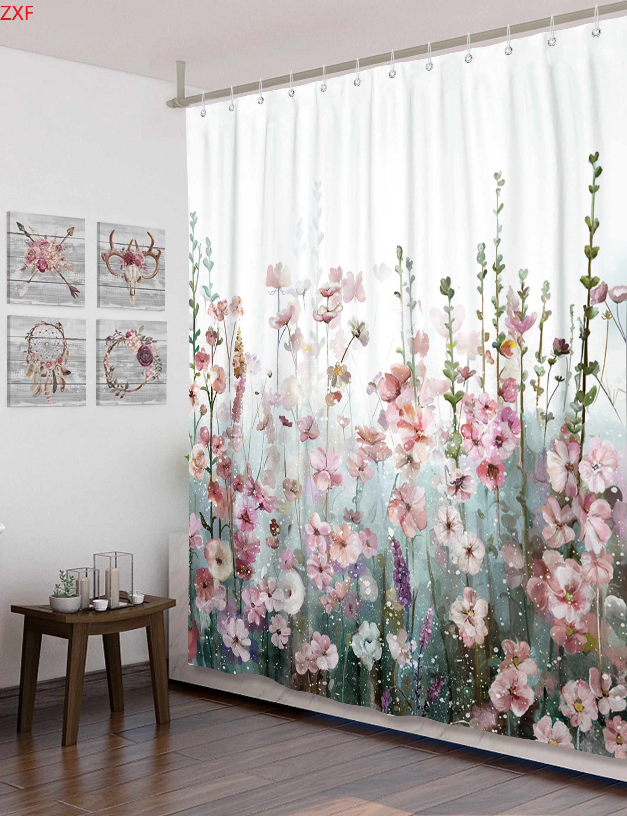 Занавеска для душа из цветочной ткани для ванной комнаты, занавеска...