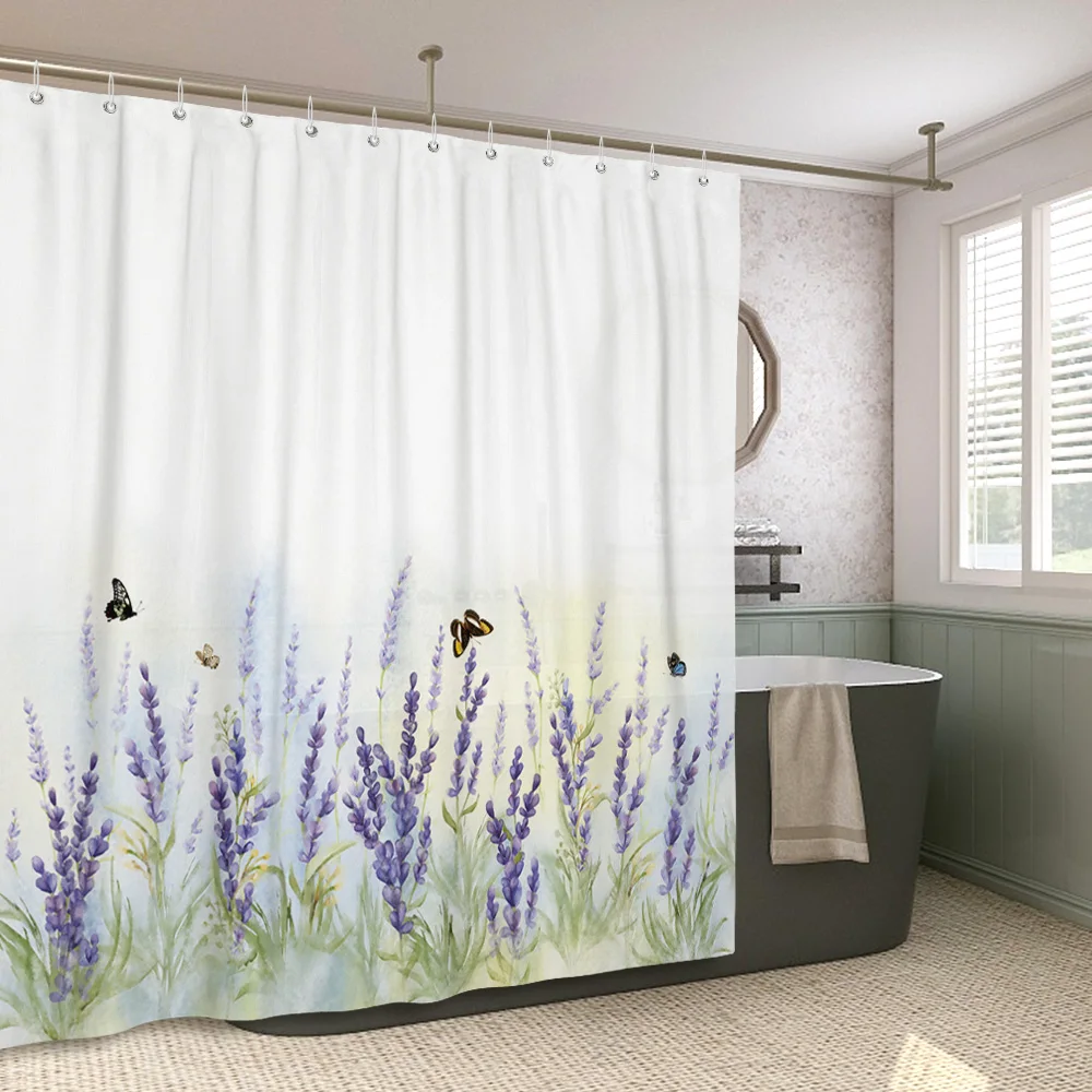 Занавеска для душа из ткани с цветочным рисунком в новом стиле, с крышкой на липучке, многоцветная, водонепроницаемая