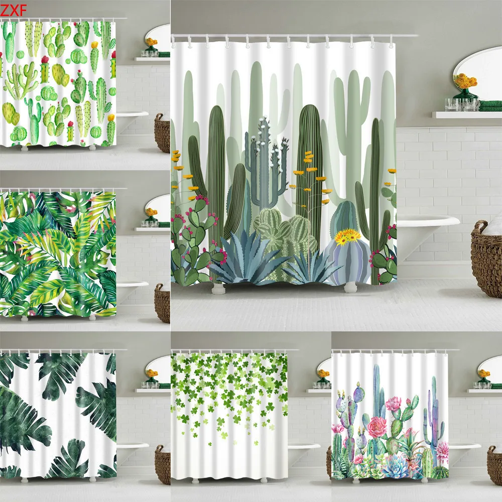 Занавеска для душа в полоску с растениями, водонепроницаемая занавеска для ванной из полиэстера с цветочным принтом и крючками