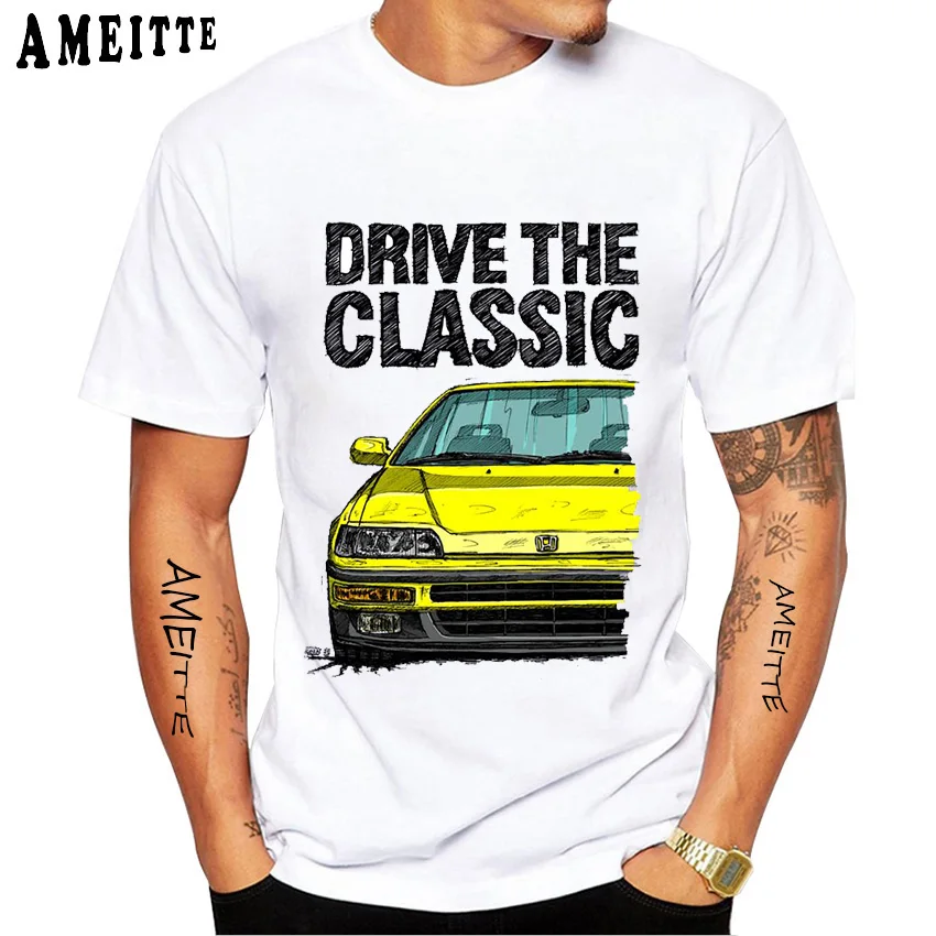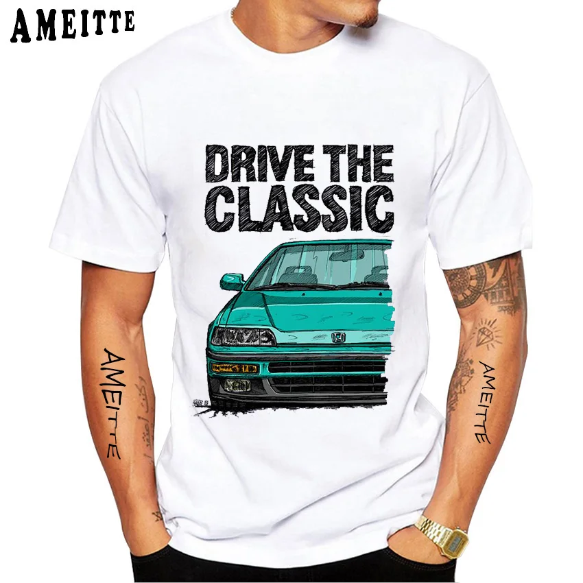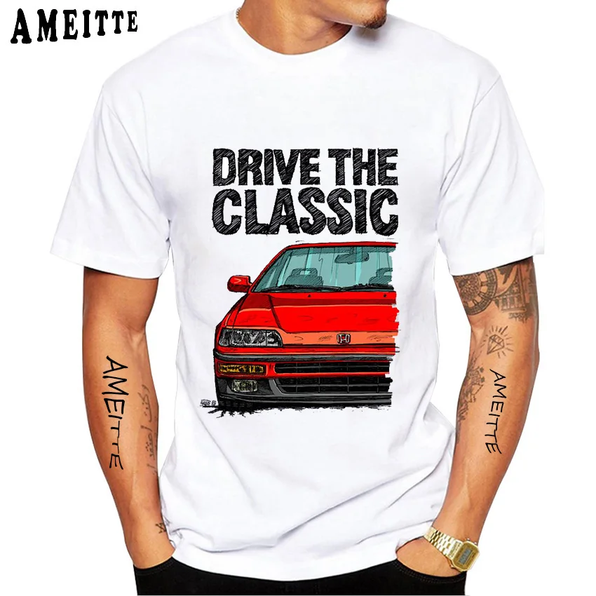 Классические мужские футболки CRX второго поколения JDM, новые повседневные топы с коротким рукавом в стиле хип-хоп для мальчиков, японская легенда, белая спортивная футболка с машинками