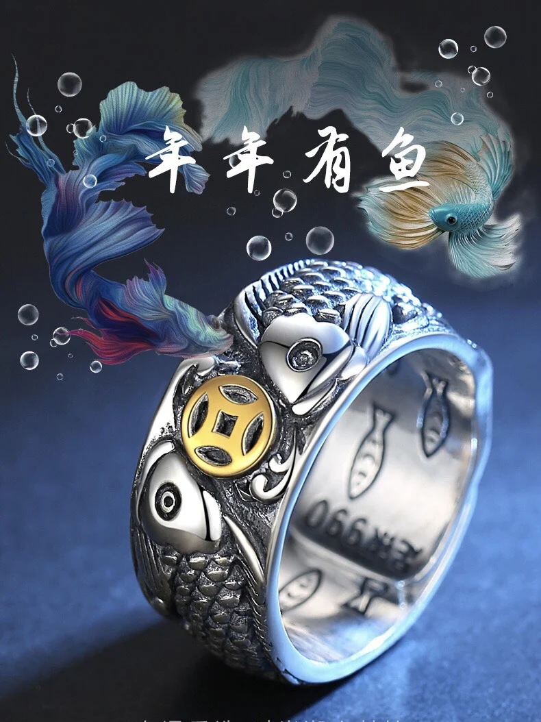 Мужское кольцо в стиле панк, кольцо в стиле ретро с изображением животного, карпа, Бобо, кольцо в готическом стиле для мальчиков и девочек, подходит для бара и ночного клуба, 2021