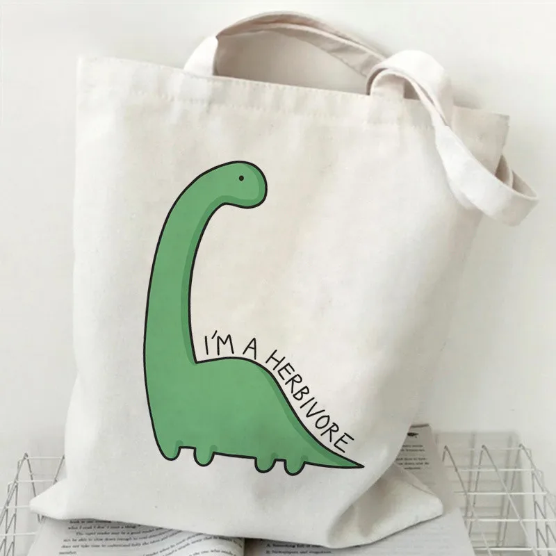 Симпатичная мультяшная сумка для покупок с динозавром, холщовые сумки из переработанного материала, многоразовая сумка для покупок, складная сумка, сумка-шоппер, сумки