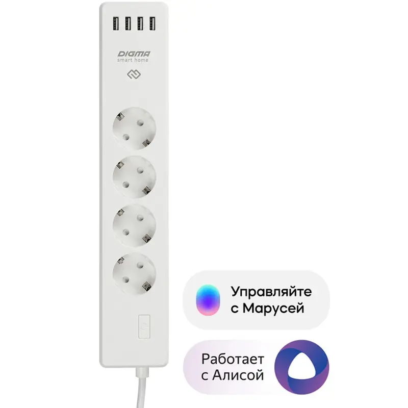 Умный удлинтель Digma DiPlug Strip 40 позволит автоматизировать включение и отключение приборов прямо со смартфона вручную, по расписанию или при выполнении определённых условий.Сразу четыре розетки для подключения, позволяют управлять несколькими устройствами, используя всего одно устройство. Если ваши устройства подключаются не к стандартным розеткам, а к USB-портам, например Bluetooth-колонки или цифровые фоторамки - ими можно удалённо управлять при помощи розеток с USB-портами.