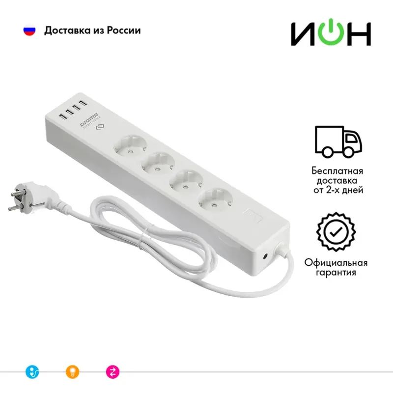 Номер модели DiPlug Strip 40 Название бренда "ИОН" Происхождение Китай Тип устройства Умный сетевой фильтр Назначение Управление бытовыми приборамивнешний вид товара