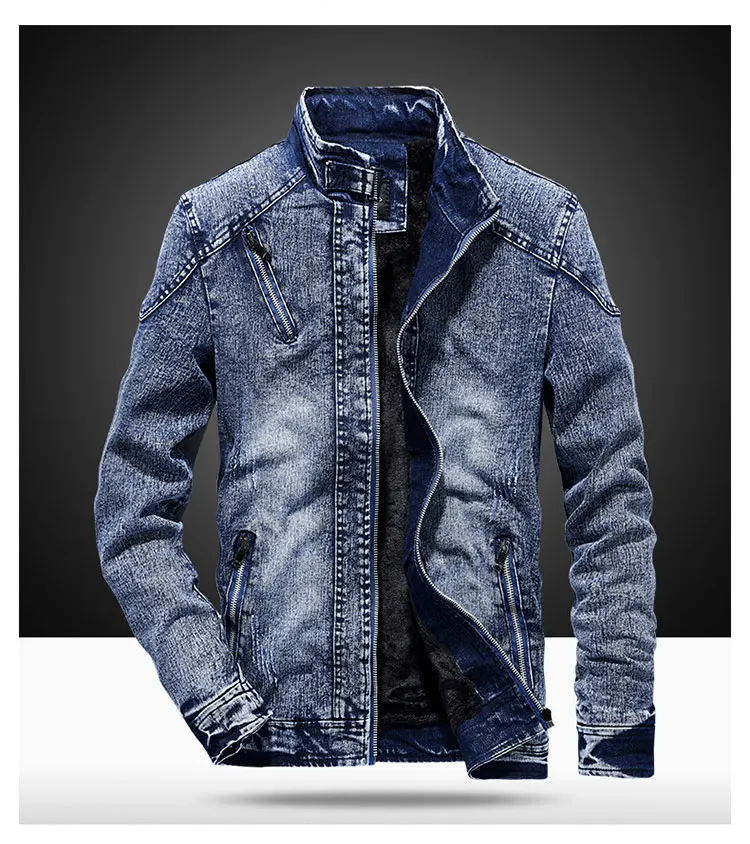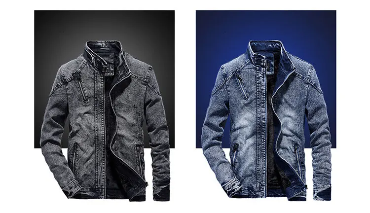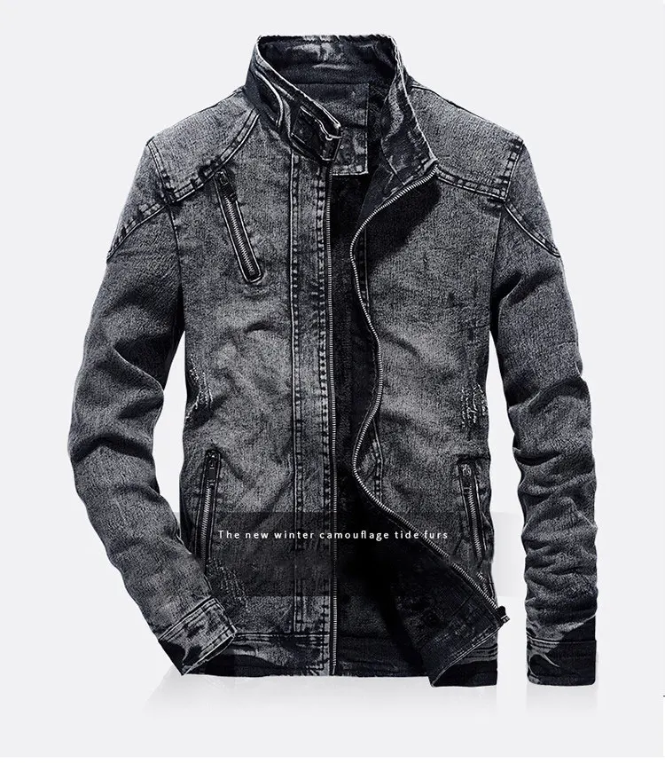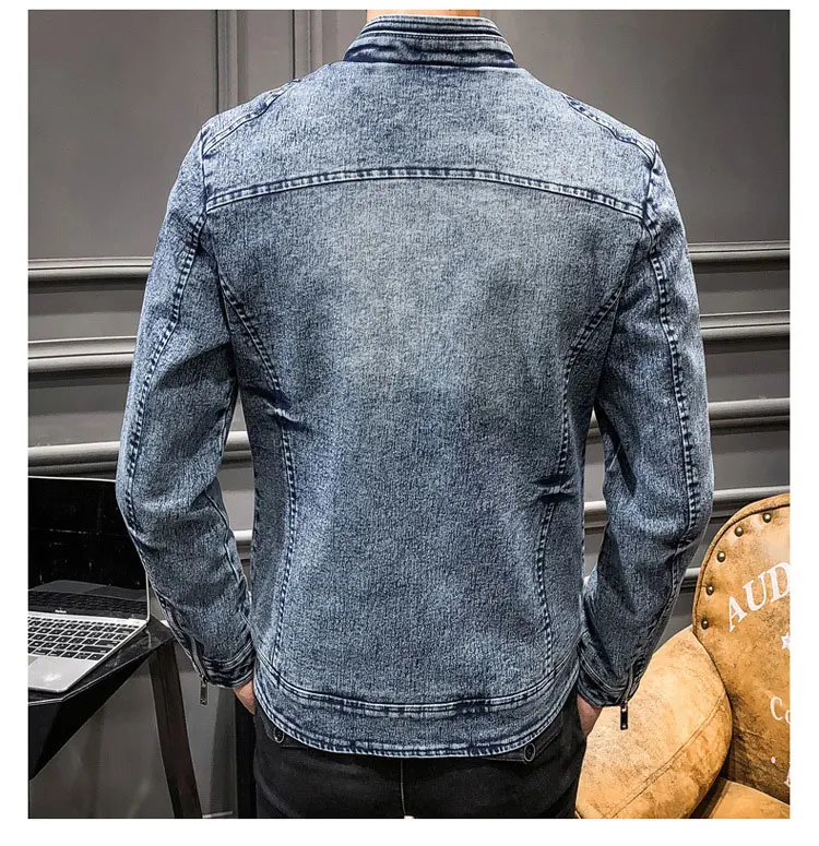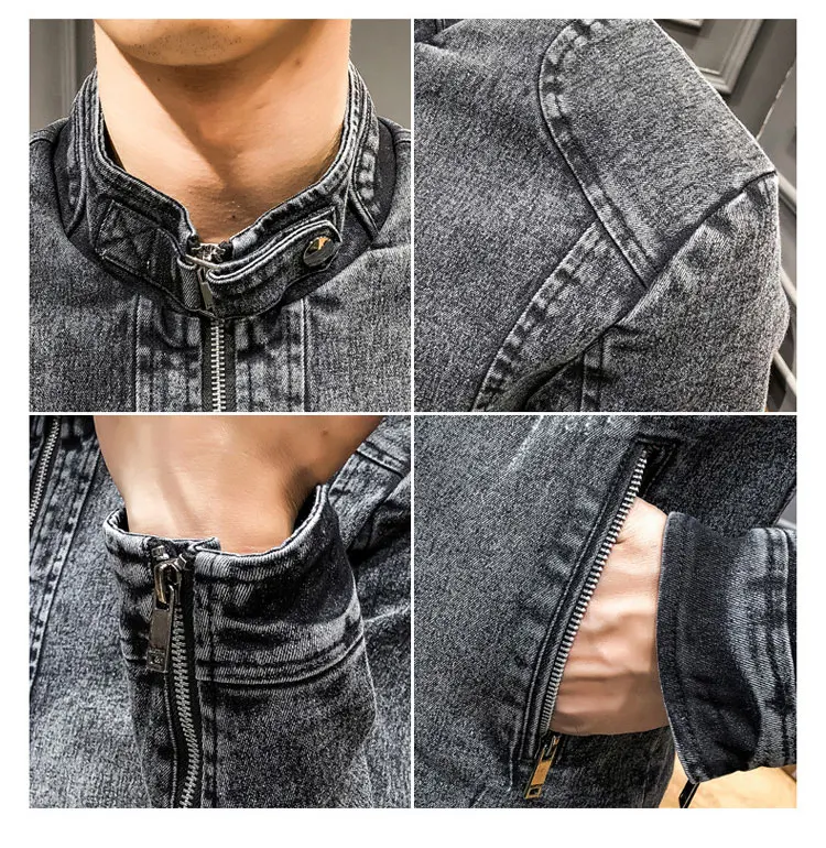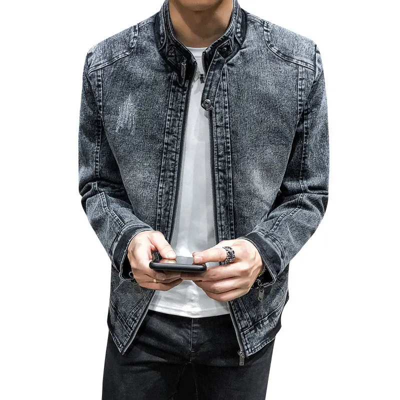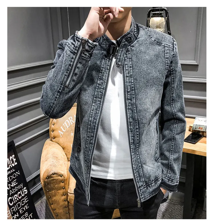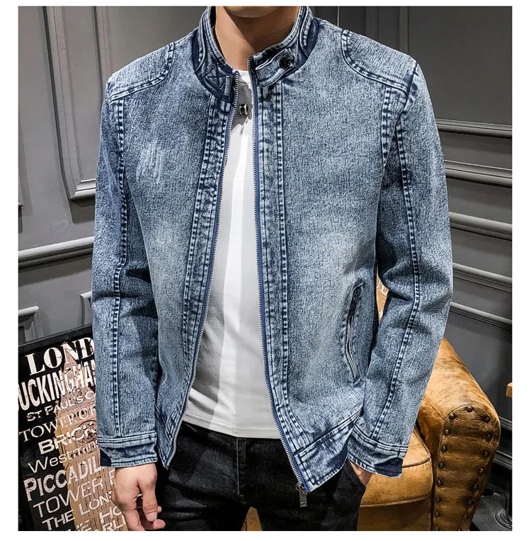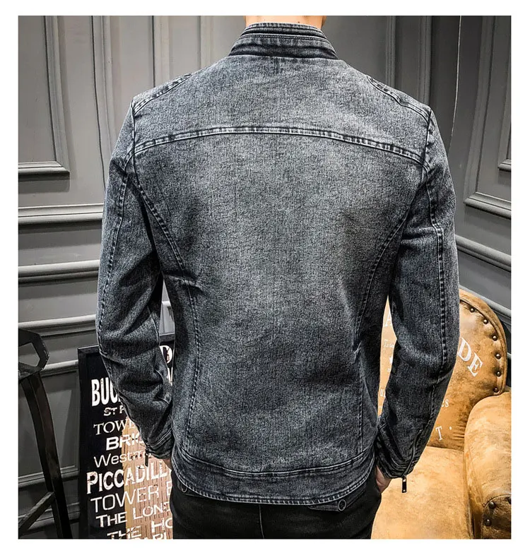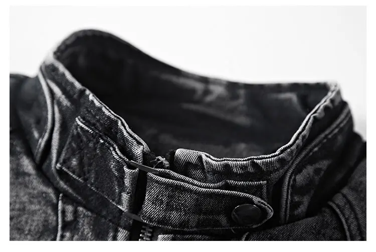 Новая Винтажная Мужская джинсовая куртка, однотонная повседневная мужская джинсовая куртка, модная одежда со стойкой для мужчин, черная, синяя куртка-бомбер для мужчин