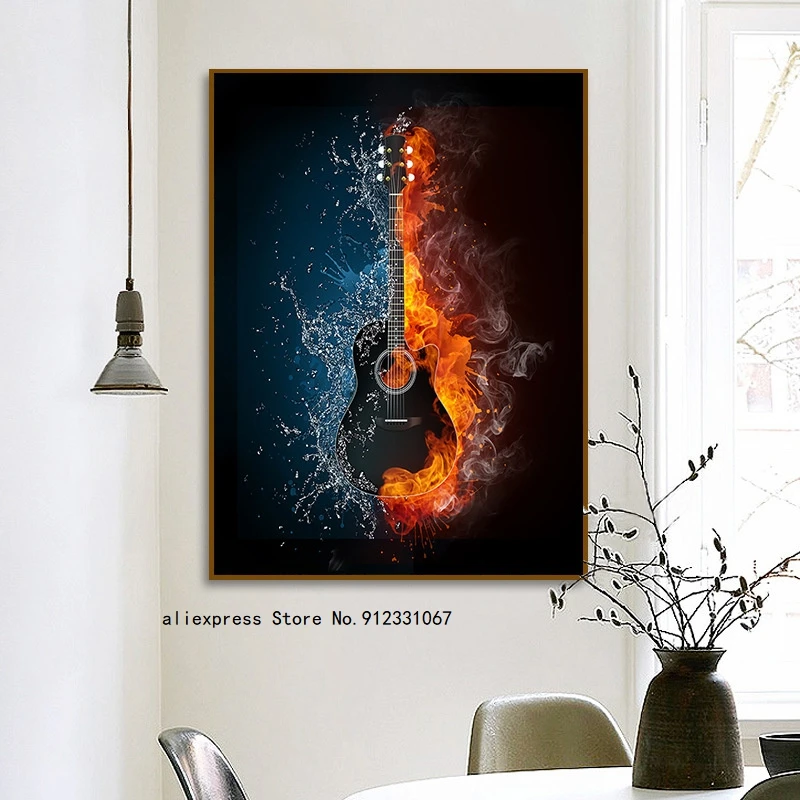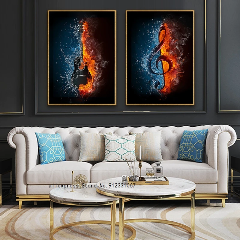 Плакат с музыкальными нотами на тему Водяной и огненной гитары, HD-печать, Современная художественная картина для гостиной, домашний Настенный декор, креативная музыкальная Картина на холсте