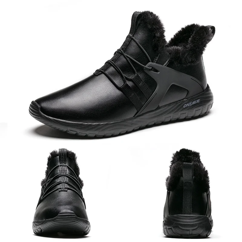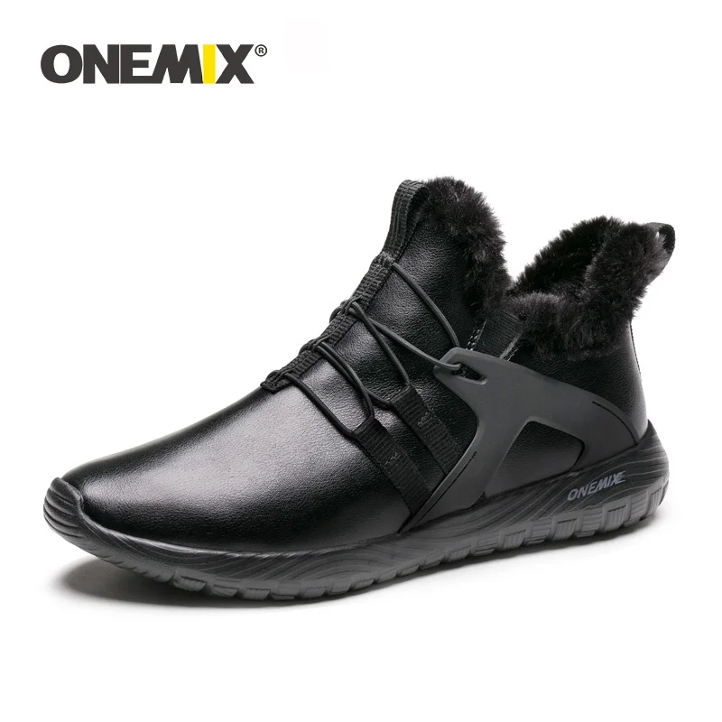 Мужские зимние кроссовки ONEMIX для бега, черные кожаные кроссовки ...