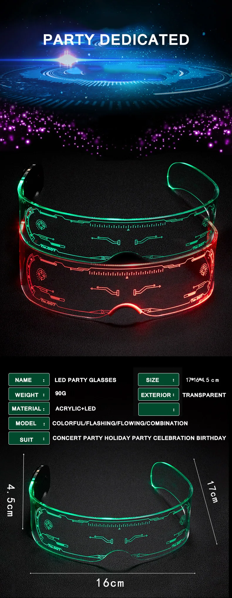 Светодиодный ные светящиеся очки, светящиеся очки в стиле киберпанк...