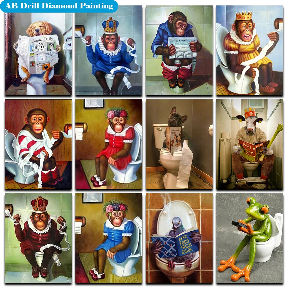 Набор для алмазной живописи AB, животные, собака, 5D, квадратная вышивка крестиком, мозаика, алмазная вышивка, обезьяна, унитаз, украшение для дома, Новогодний подарок
