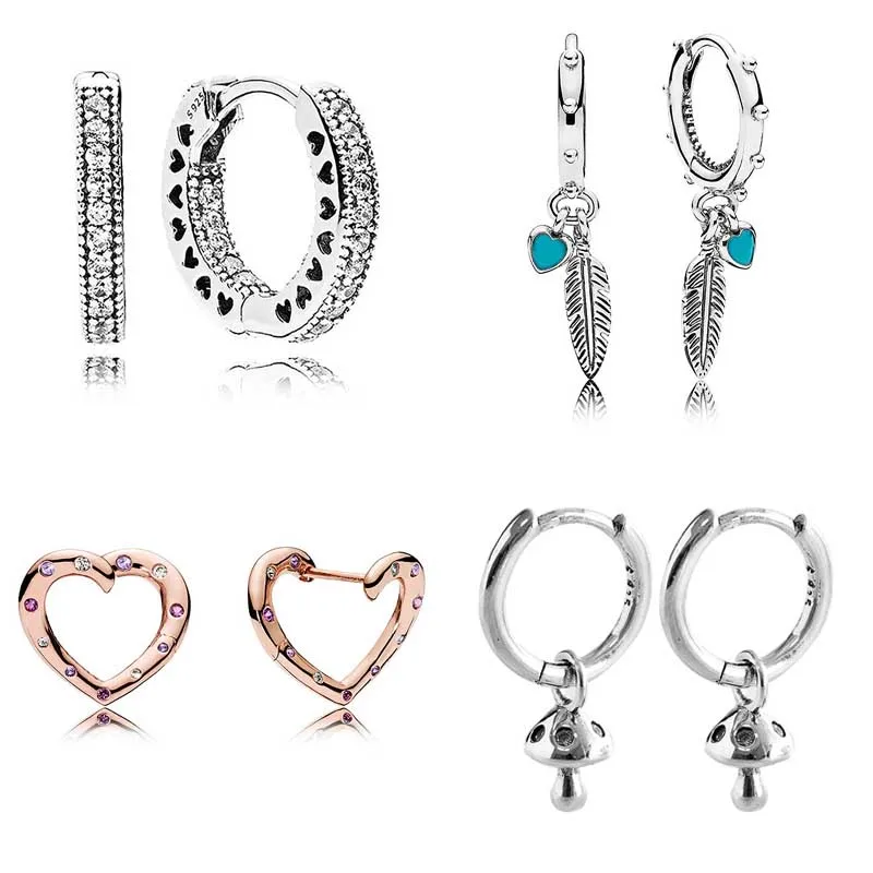 Новинка, серьги из стерлингового серебра 925 пробы, роза, яркое сердце, духовные перья, имитация кристалла для женщин, ювелирные изделия pandora
