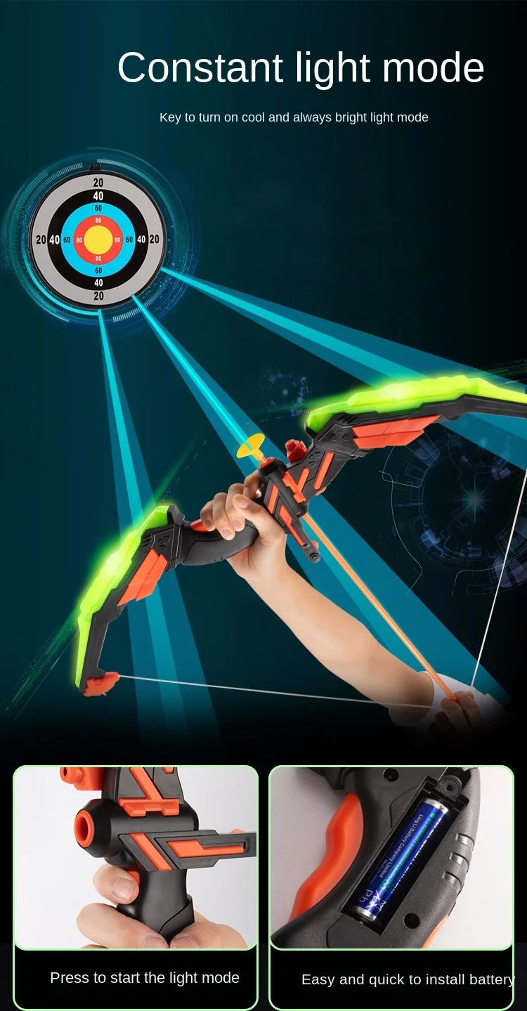 Название продукта: детский осветительный набор с луком и стреламиМатериал изделия: пластикПроисхождение: КитайПосылка: цветная коробка